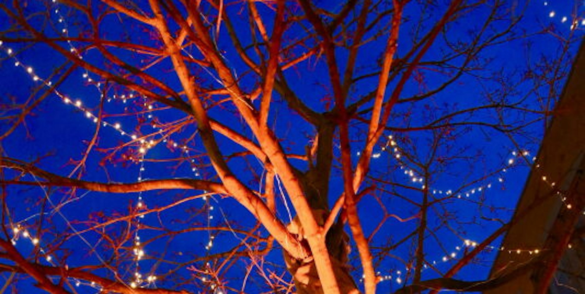 Lichterketten lassen die großen Bäume in einem zauberhaften Glanz erstrahlen.
