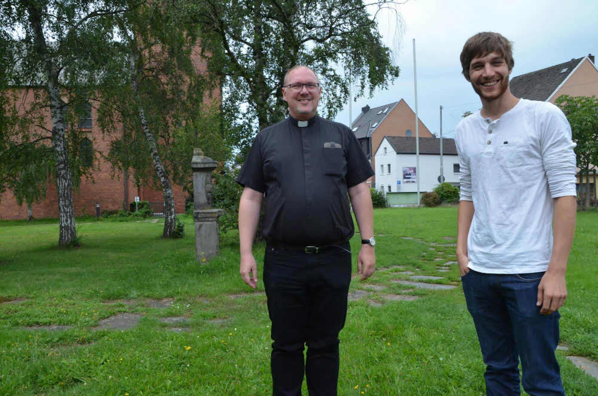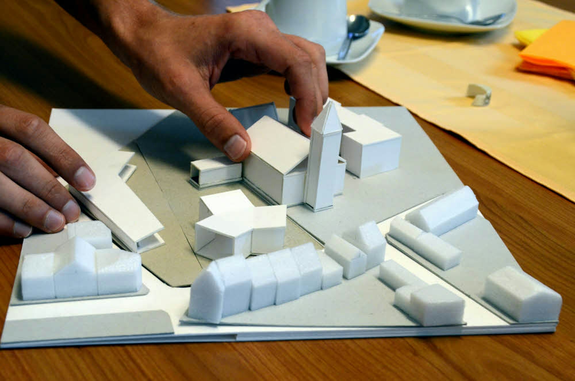 Auch am Modell erläuterten Pfarrer Hermann-Josef Zeyen und Jannis Renner das Projekt.