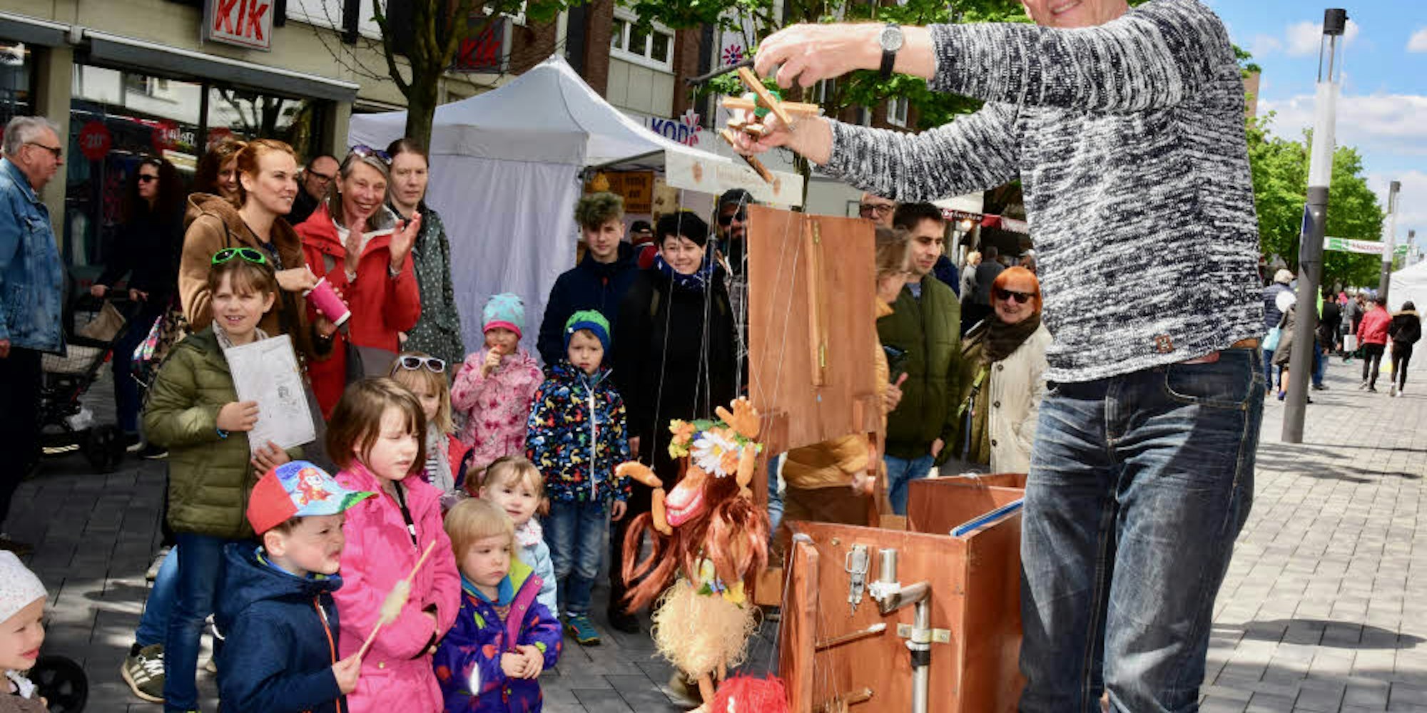 Ein Renner bei den Kindern war Puppenspieler Ralf Hohmann, der am Minitheater seine sympathischen Figuren und Bühnenbilder zeigte. So tanzte etwa das Hula-Püppchen - den Namen hatten die Troisdorfer Pänz vergeben – zum Meeresrauschen vor einem weißen Sandstrand. Die Kleinen waren auch bestens bei Märchenerzählerin Griseldis aufgehoben. Hinter dem Künstlernamen steckte die stellvertretende Vorsitzende des Troisdorfer Literatur-Cafés, Maggy Ziegler. 165 Märchen habe sie in ihrem geistigen Fundus, darunter auch keltische und asiatische. Für den Familientag hatte sie sich indes für deutsche Märchen á la Grimm verschrieben. Wenngleich sie diese in der „alten“ Sprache, also „etwas schwülstigeren Sätzen“ erzählte. „Die Kinder verstehen das sehr gut und sind fasziniert“, so Maggy Ziegler.