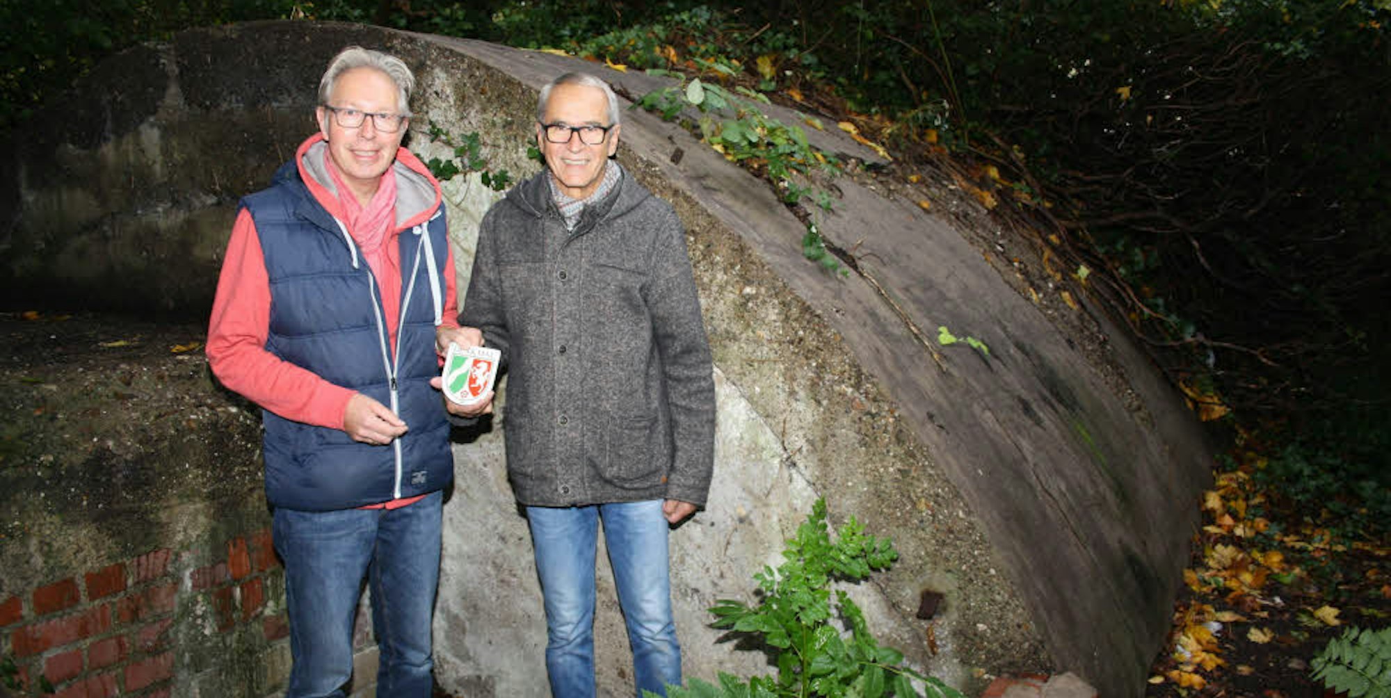Die Splitterschutzanlage wurde in die Denkmalliste aufgenommen, Holger Fettke (links) und Rudolf Eich sind zufrieden.
