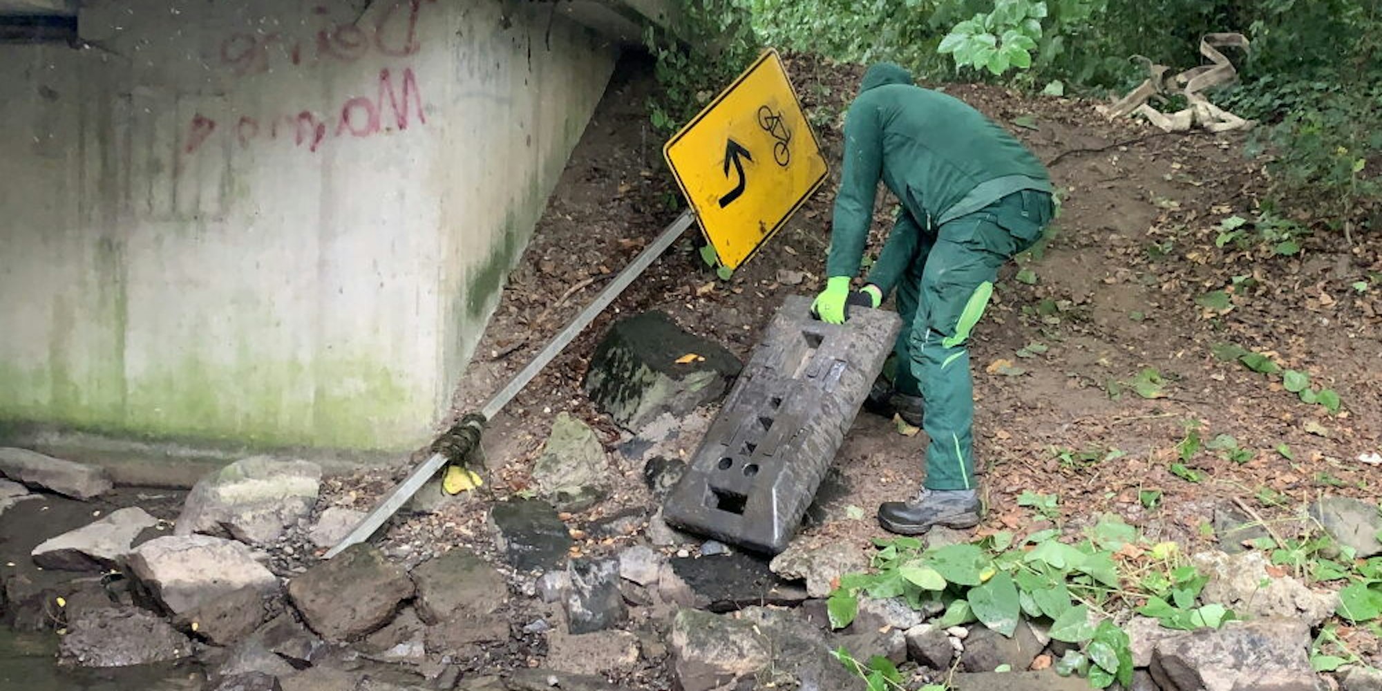 „Das war ein echter Knochenjob“, berichtete Projektleiter Thomas Petruszek. An Gartenabfälle wie Baum-, Hecken- und Rasenschnitt, Plastikmüll, Flaschen, Autoreifen, Möbelpolster und Metallmüll habe man sich ja leider inzwischen schon gewöhnt. In diesem Jahr wurden darüber hinaus aber auch noch eine ganze Mülltonne sowie Straßenschilder und Absperrgitter gefunden.