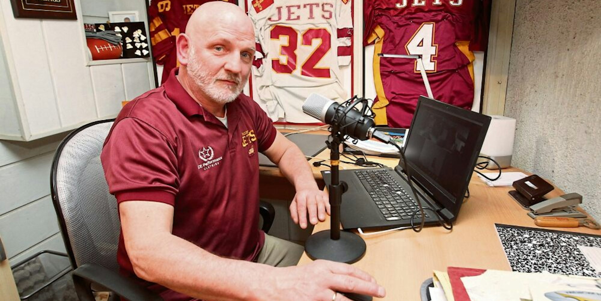 In seinem Keller hat sich Stephan Pohl eine Jets-Ecke eingerichtet, wo er einmal in der Woche seinen Podcast aufnimmt.