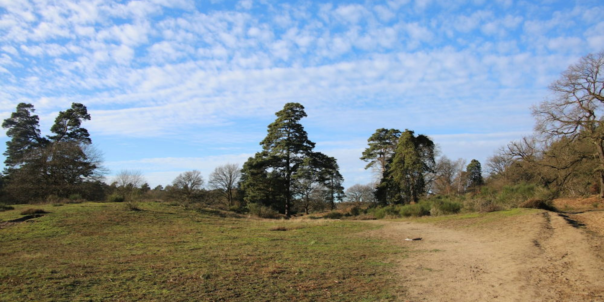 Unterhalb des Fliegenbergs zieht sich ein sandiger Heidestreifen mit vielen Pfaden und tollen Ausblicken.