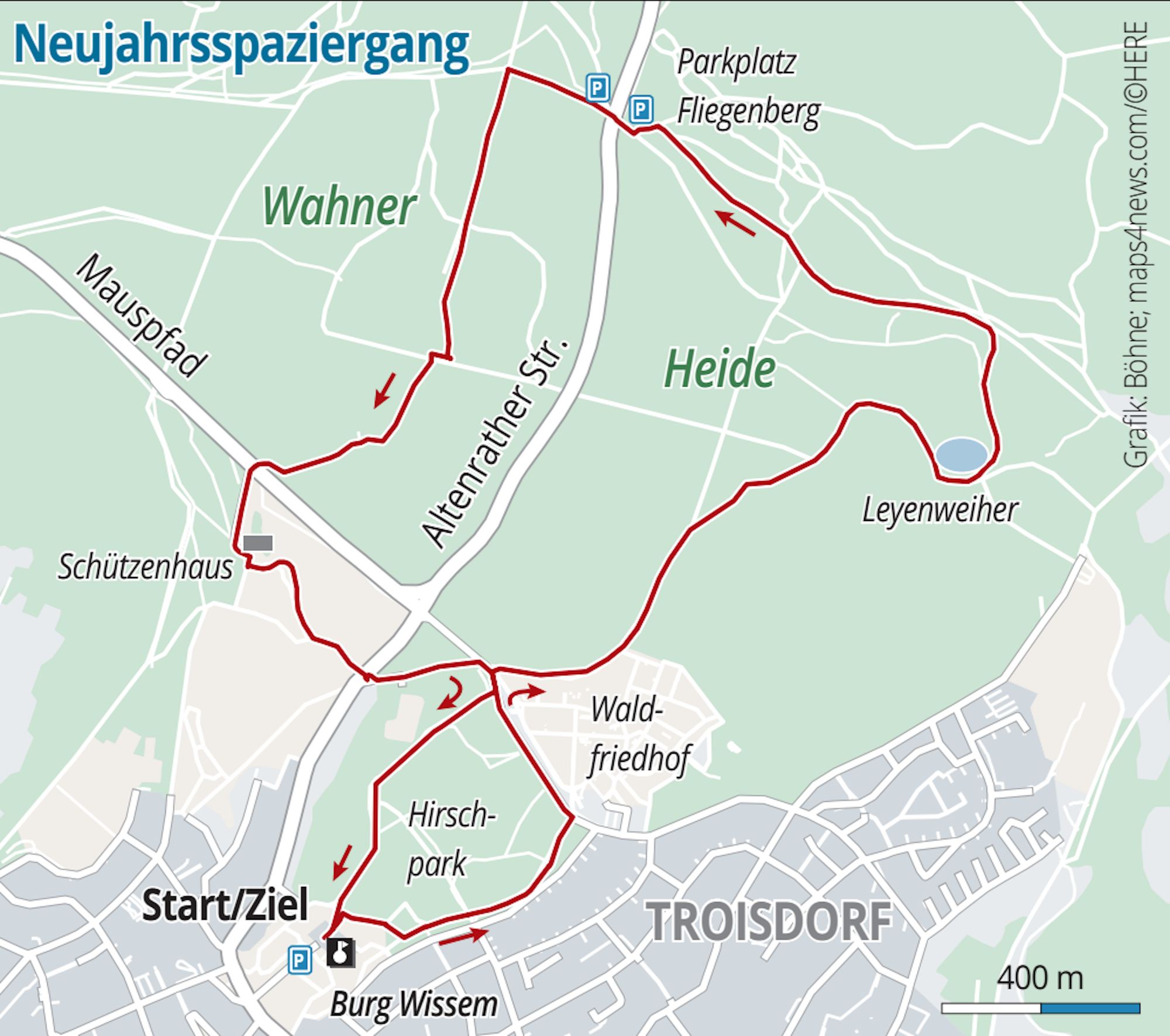 Troisdorf – „Was hast du denn zu Weihnachten bekommen?“ „Ne Wampe!“ Wer dem zustimmen kann, sollte sich flugs in Bewegung setzen und Pfunde abtrainieren. Eine sanfte Variante bieten wir mit unserer 6,5 Kilometer langen Wanderung ins neue Jahr.