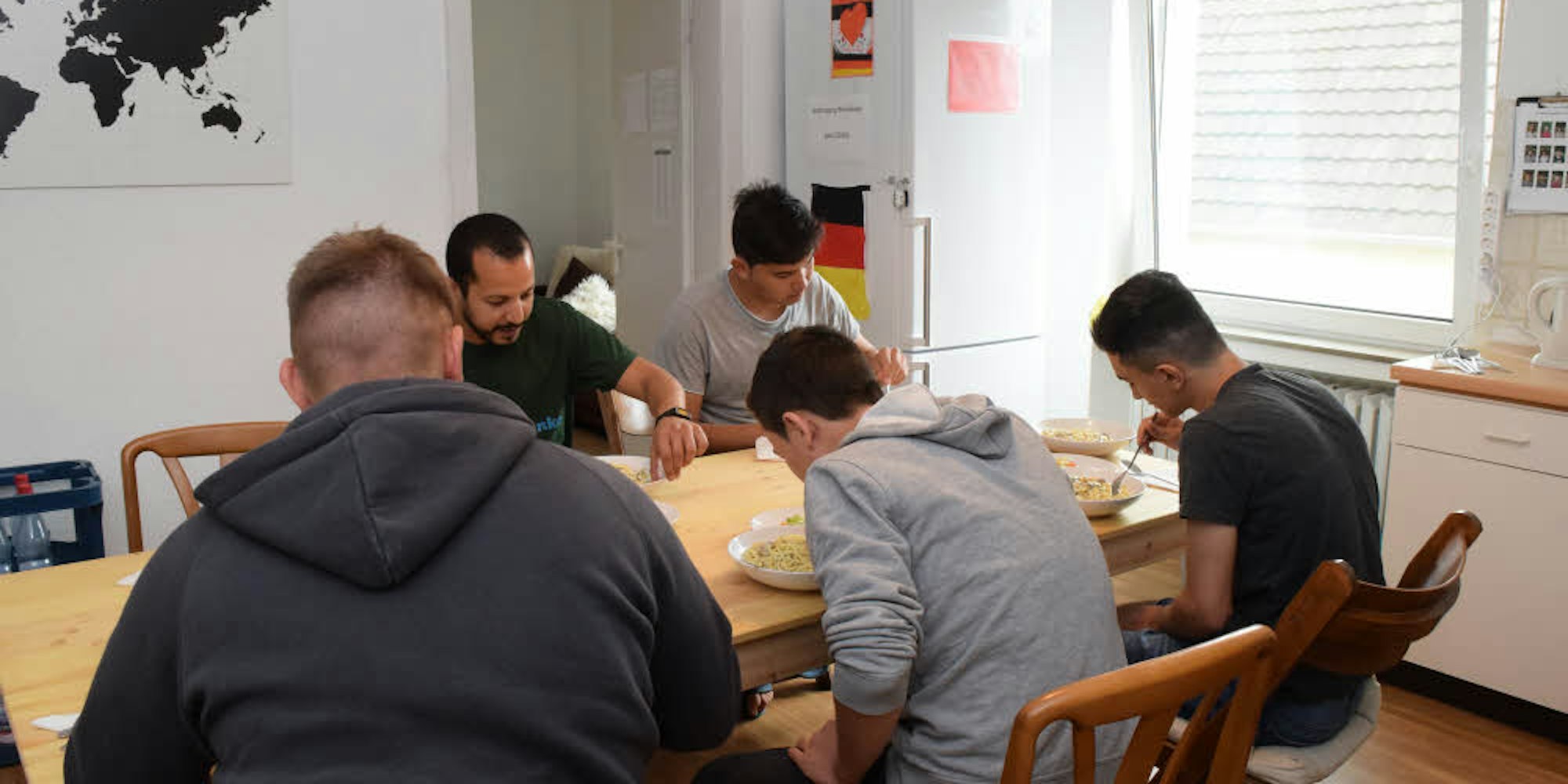 Gemeinsame Mahlzeiten sind Teil des Tages in der Unterkunft für die zwölf Jugendlichen, die ohne Familie eingereist sind.