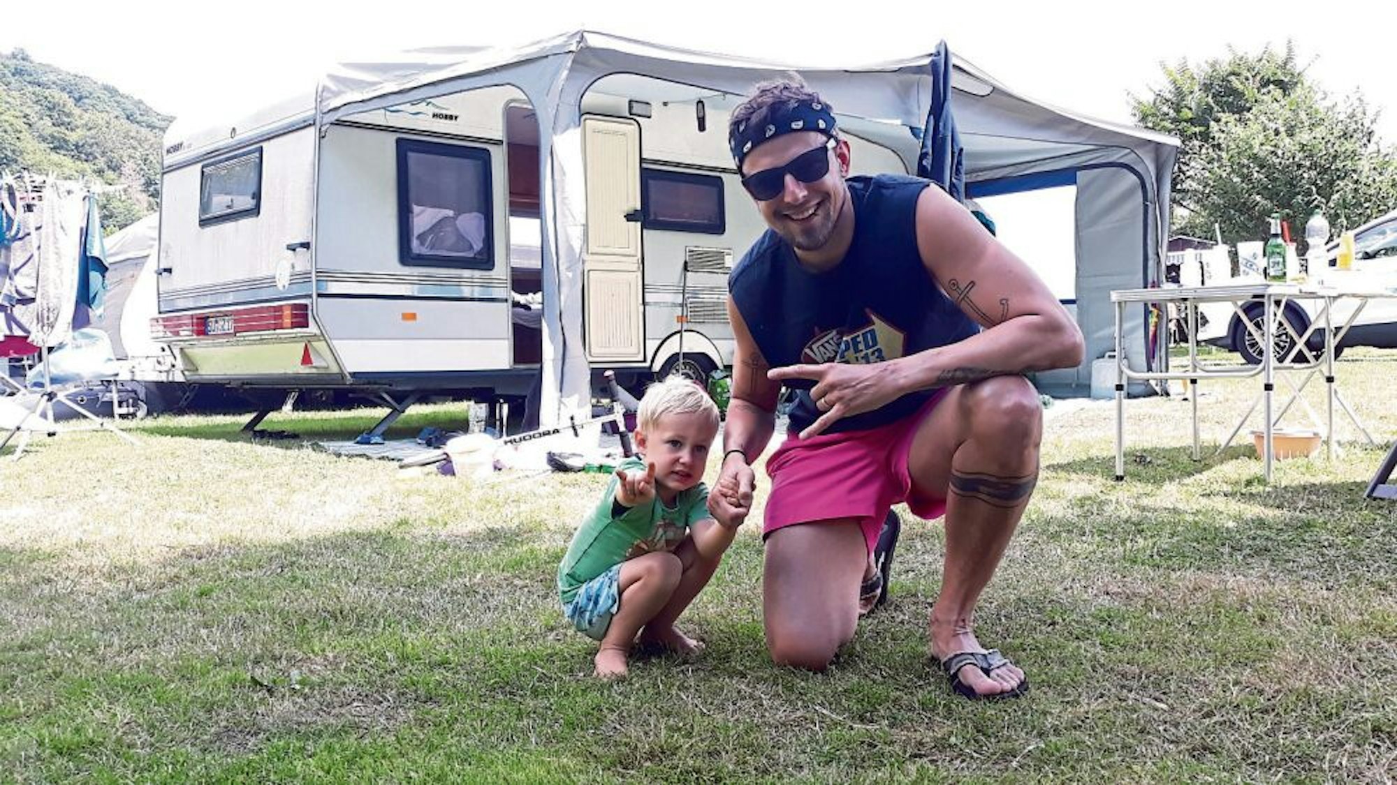In Eitorf, am Campingplatz Happach, kommt Kamill Gosz gerade vom Duschen zurück. „Jetzt erst mal ein Bier“, meint er – auch der Reporter bekommt eins. Ein verlängertes Wochenende ist der Troisdorfer hier, mit seiner Frau Tine sowie deren Schwester Rike Ohrem mit Ehemann Andreas. Sie kommen aus Wachtberg. Die Kinder der beiden Familien, Pia (6) und Nils (3), streunen um das Zelt und den Wohnwagen herum, die auf einer Wiese dicht am Siegufer aufgebaut sind.