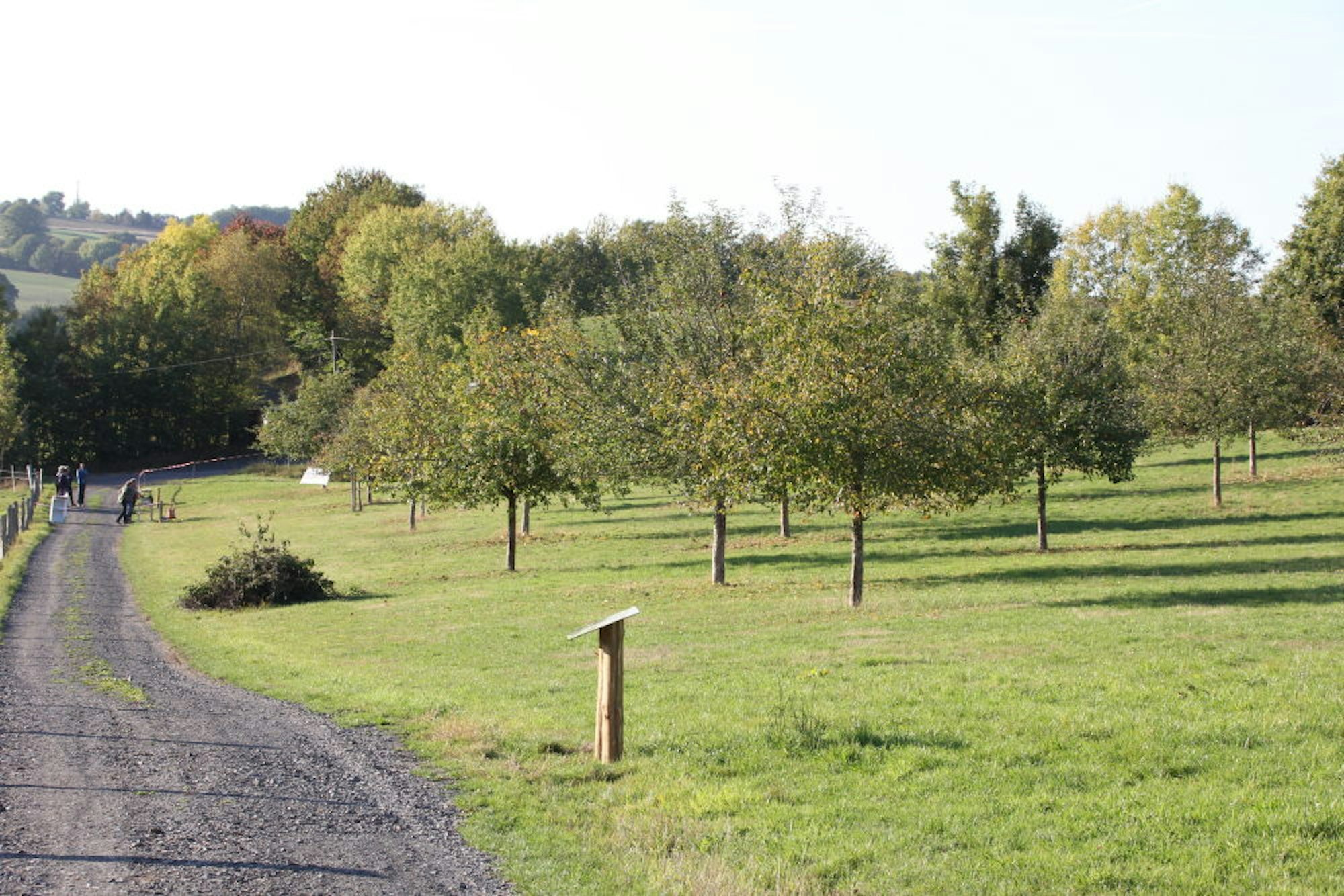 Startpunkt des Rundweges kann zum Beispiel der Wanderparkplatz Scheffenstraße bei Lückert sein. Die Route, die von moderatem Auf und Ab geprägt ist, führt durch eine Bilderbuchlandschaft, in der zum Osterfest der Frühling zum Zuge kommt. Die Bäume lassen schon erahnen, dass dort in wenigen Monaten Äpfel der unterschiedlichsten Sorten wachsen werden. Im Herbst werden dort Rheinischer Winterrambur, Schafsschnauze und Danziger Kantapfel geerntet. Aus diesen alten Sorten wird auch vor Ort schon einmal frischer Saft gepresst.