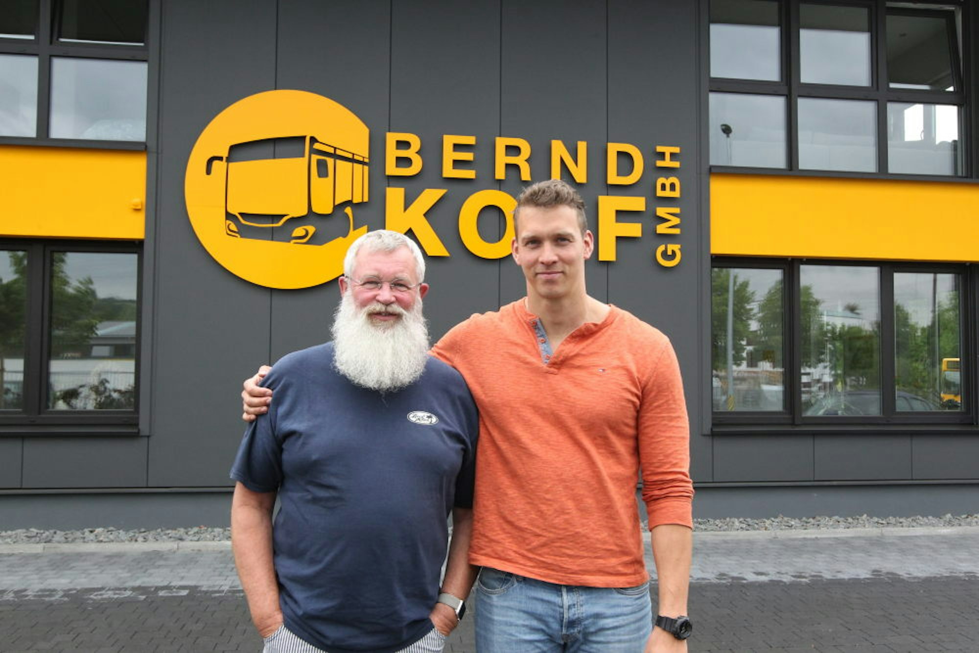 Erst 2019 investierten sie in die neue Halle in Eitorf und in fünf Busse: Unternehmer Bernd Kolf mit seinem Sohn Dominique.