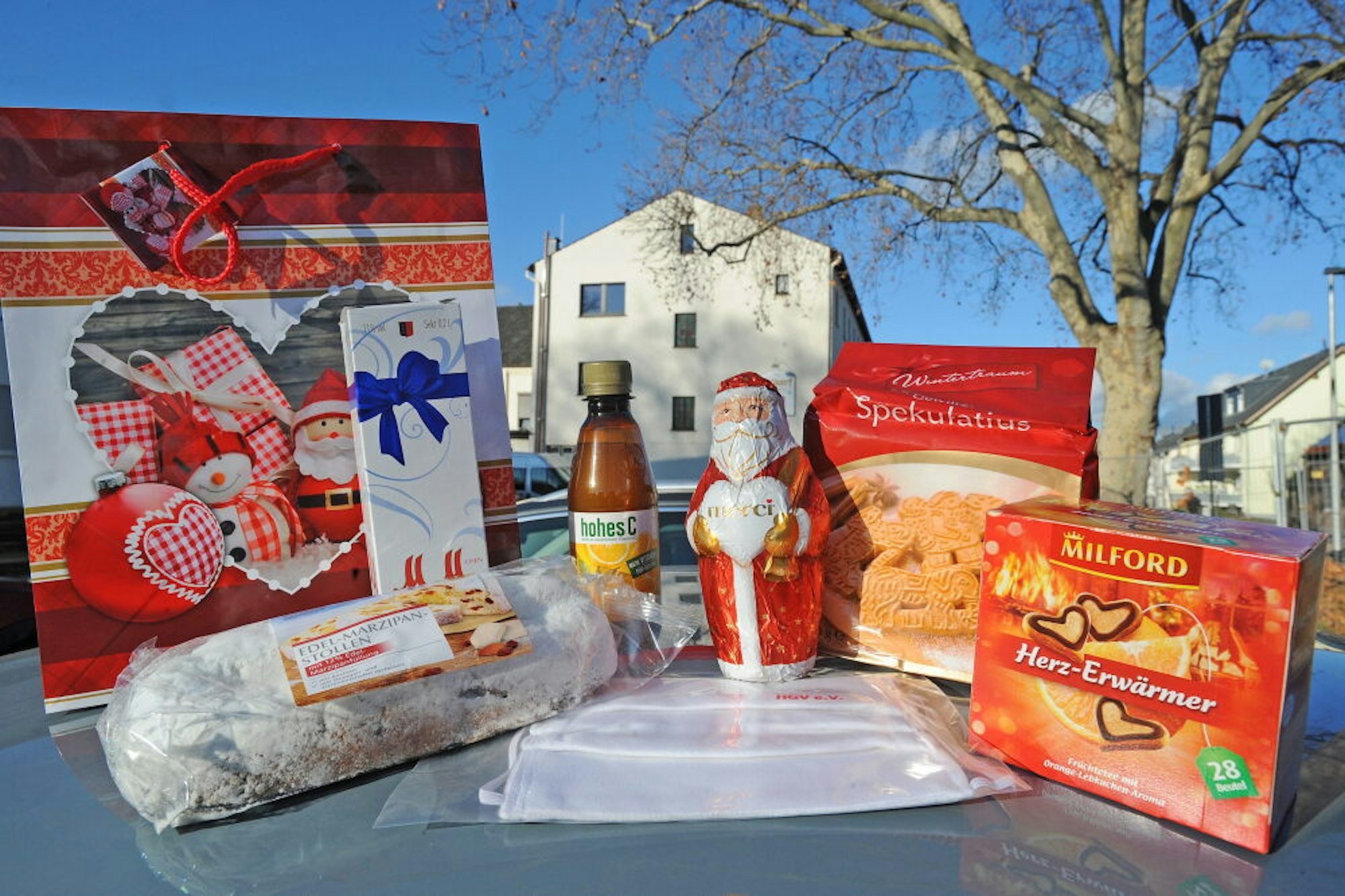 „Wir haben dieses Jahr nur Verluste gemacht“, erzählt Siggi Kleinschmidt, Vorsitzender des Vereins. „Aber wir wollten auch nicht betteln gehen. Die Sponsoren und Geschäftsleute haben es ja derzeit selber schwer.“ Mit den zusammengekratzten Mitteln war es den Ehrenamtlichen möglich, 85 Tüten zu befüllen. Es mussten also ebenso viele Senioren ausgelost werden, die dann das Glück hatten, mit einer der Tüten beehrt zu werden. Drin sind für jeden Sekt, Tee, weitere Köstlichkeiten und natürlich die namensgebende Packung Spekulatius. Dazu kommt – ein 2020er-Dauerbrenner – eine Atemschutzmaske. Diese wurden von Christian und Sandra Göres genäht, der Karnevalstruppe des Vereins, die sonst um diese Zeit an den Kostümen für die Session sitzen würden.