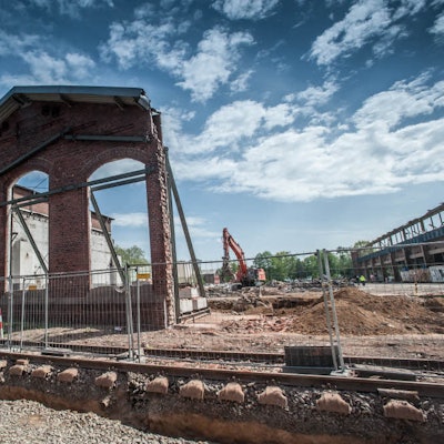 Die Lärmschutzwand wird gerade an der Europa-Allee aufgestellt.