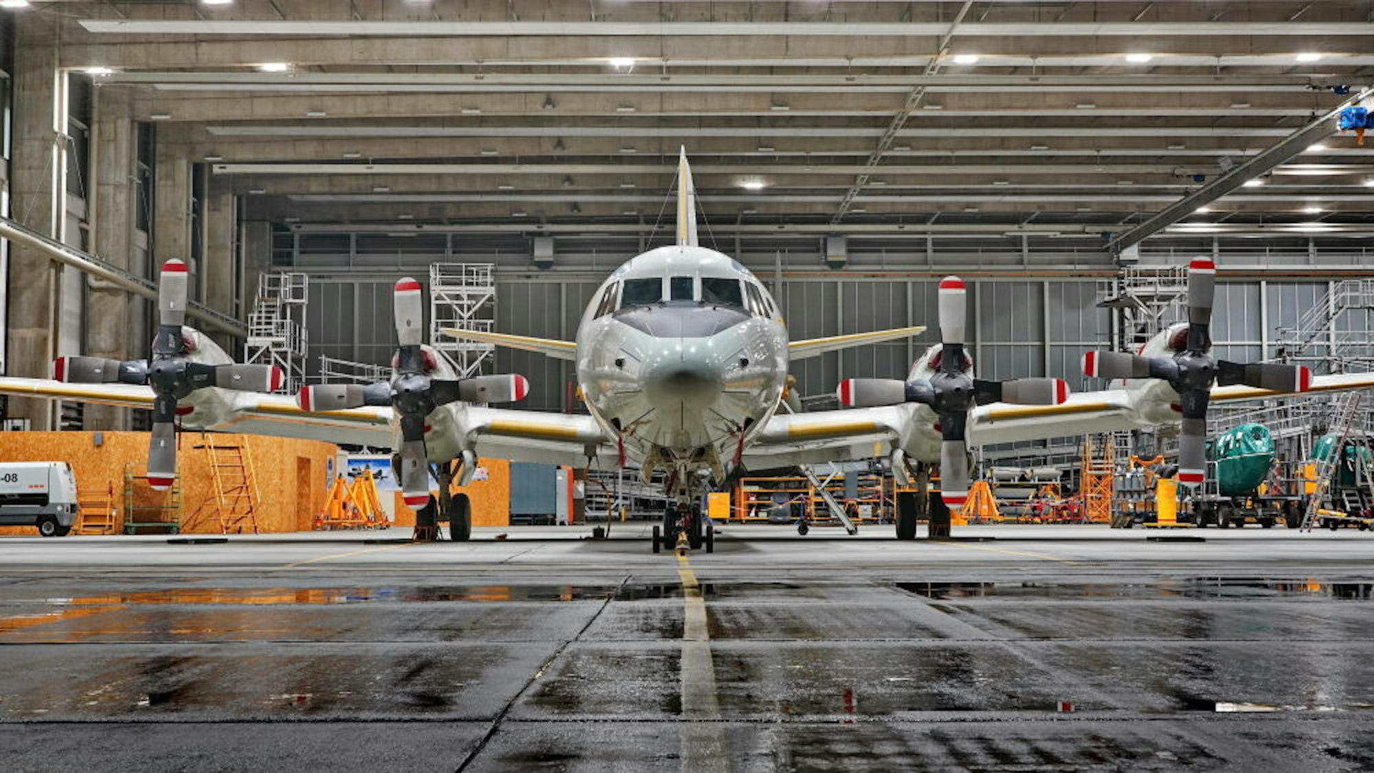 Damit ist die Fliegerstaffel sonst unterwegs: eine Lockeed P3C Orion im Hangar in Nordholz