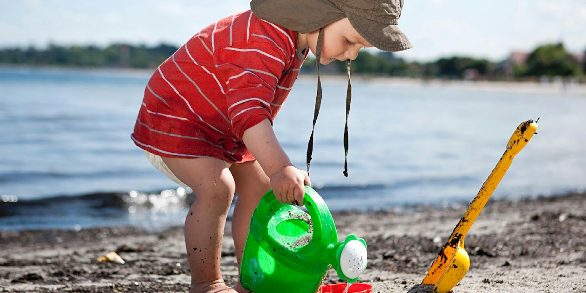 Am Strand buddeln und Sandkuchen backen: Für kleine Kinder wie hier in Eckernförde ein wahres Vergnügen