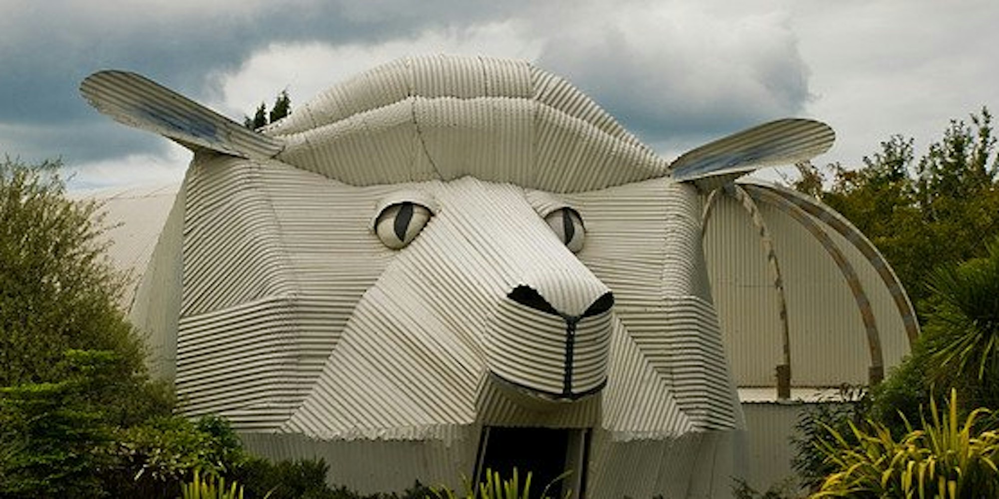 Dieses Schaf im neuseeländischen Tirau kann man betreten: In seinem Bauch gibt es Produkte aus Wolle zu kaufen.