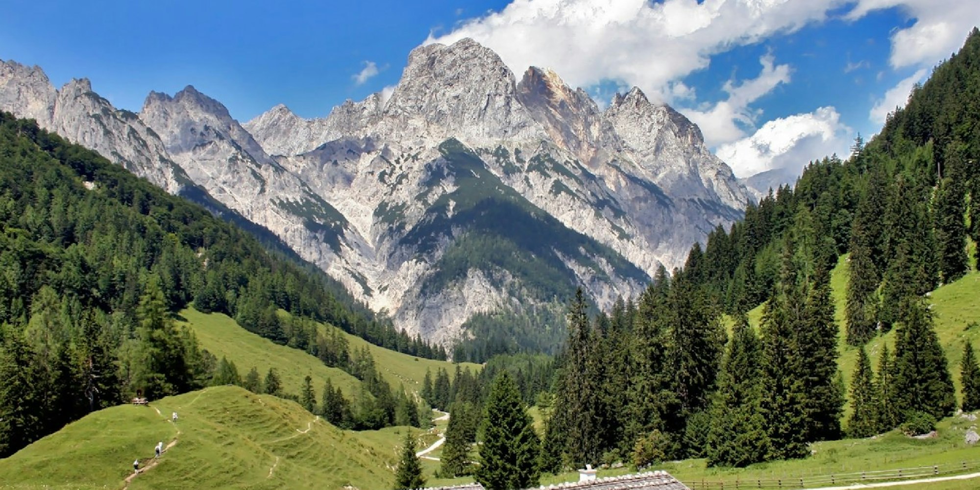Bergpanorama bei der Bindalm im Nationalpark Berchtesgaden. Hier erleben Urlauber die Welt des Hochgebirges.