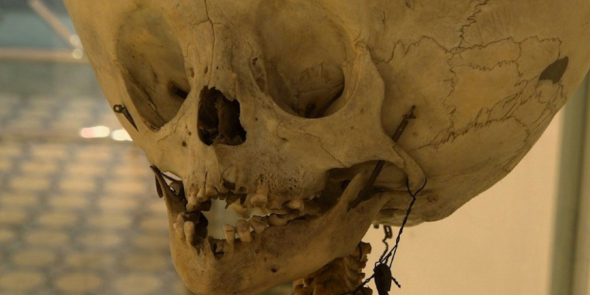 Dieser Mensch kann nicht gesund gewesen sein: übergroßes Schädel-Skelett.