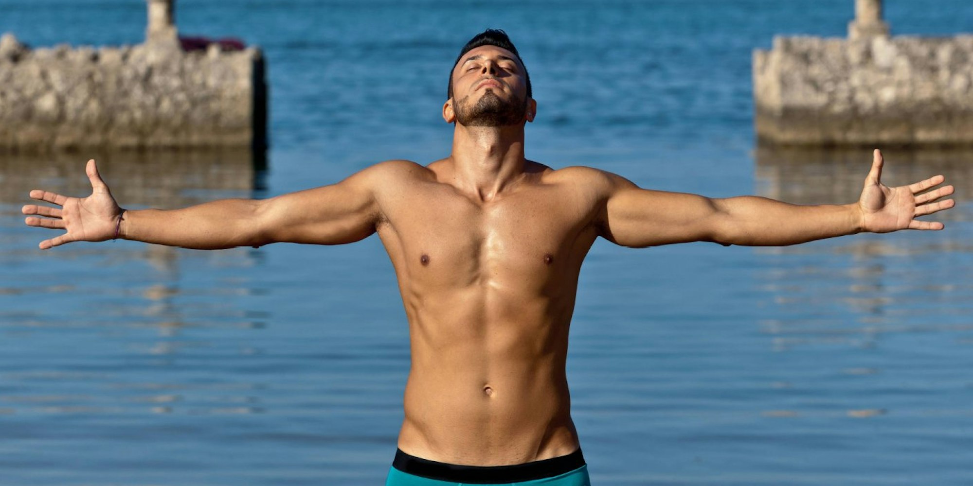 Der Poser braucht kein kühles Bier (siehe „Der Sonnenscheue“) – er lebt von bewundernden Blicken. Dieser Strandtyp liebt es, sich in Szene zu setzen. Schließlich soll jeder seinen durchtrainierten Körper sehen. Nicht umsonst stemmt er drei Mal pro Woche im Fitnessstudio Gewichte.