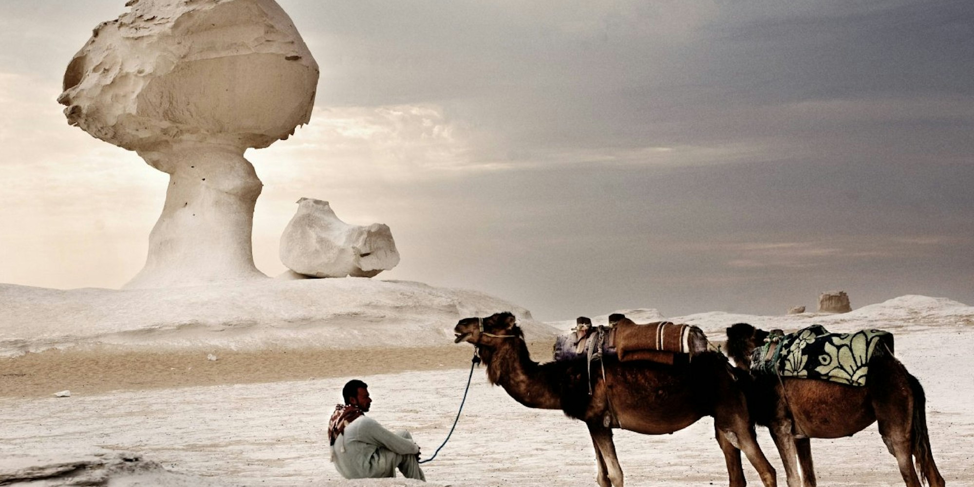 Wie ein großer Skulpturenpark wirkt die Weiße Wüste, etwa 500 Kilometer südwestlich von Kairo, auf manche Besucher. Außergewöhnlich geformte Kalksteingebilde prägen die Landschaft. Sie sind durch Plankton im Mittelmeer entstanden, das in der Kreidezeit das Gebiet bedeckte, in dem sich die Weiße Wüste heute befindet. Ihre Form erhielten die Kalksteinformationen später durch Wind- und Wettererosion.