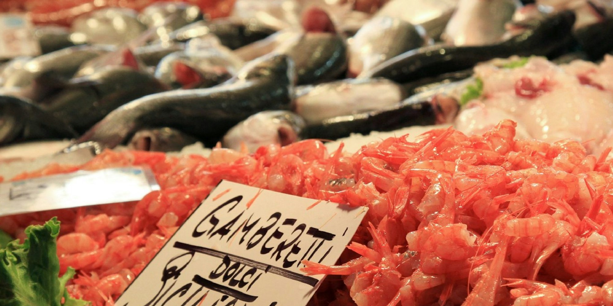 Ganz frisch: Auf dem Fischmarkt von Venedig „La Pescheria“ werden natürlich auch Garnelen angeboten.