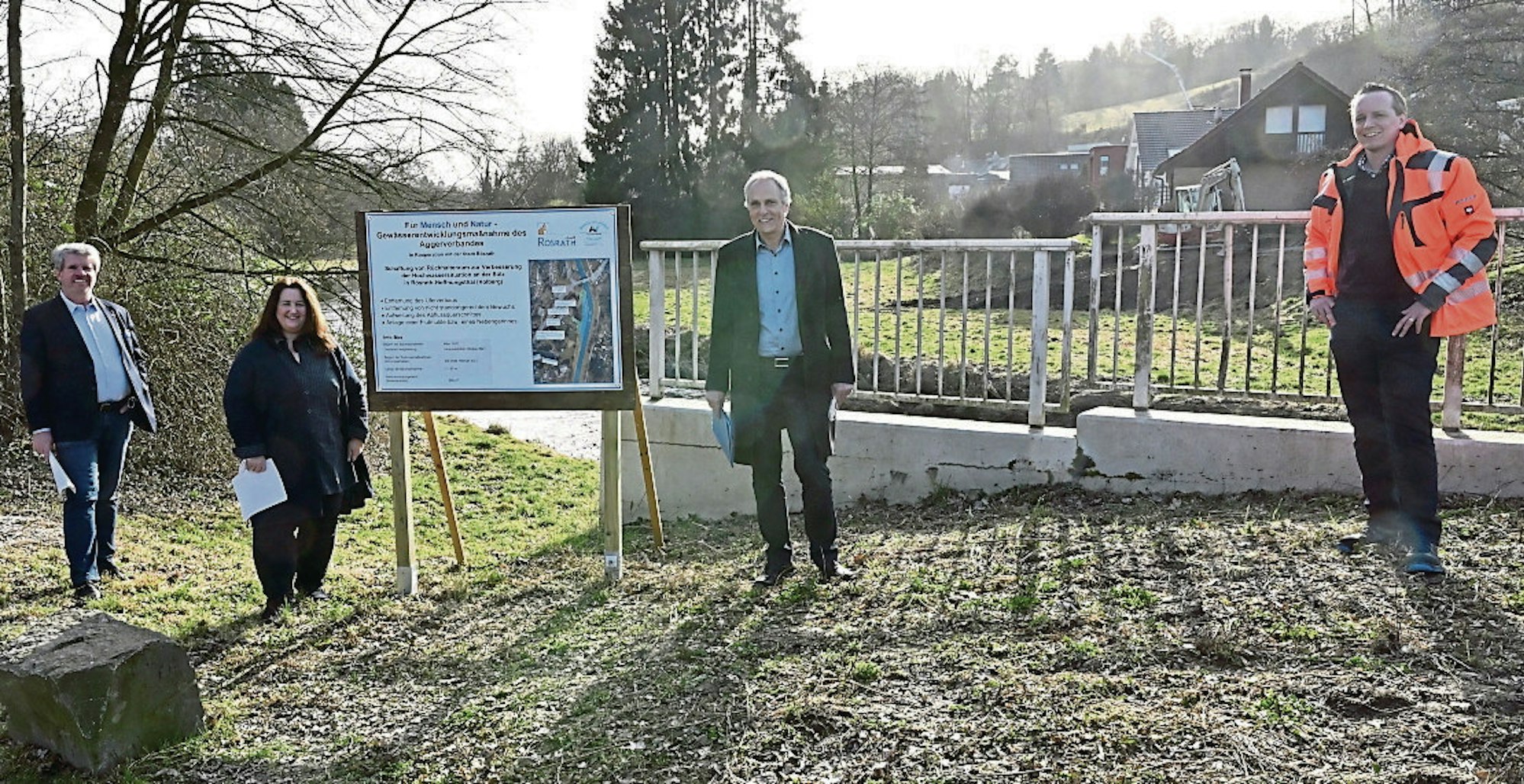 So sollten insgesamt drei Einfamilienhäuser entstehen. Die Stadt konnte mit einem Erlös von insgesamt 400 000 Euro für den Verkauf der drei Grundstücke rechnen. Auch ein ökologischer Ausgleich für die Bebauung im Überschwemmungsgebiet war vorgesehen: Im Februar 2021 stellten Aggerverband und Stadt das Projekt vor – einen Wasserrückhalteraum mit natürlicher Gestaltung, eine Verbreiterung des Flussbetts auf einem circa 130 Meter langen Abschnitt zwischen der Straßenbrücke Volberg und der Sülzbrücke in der Hauptstraße.