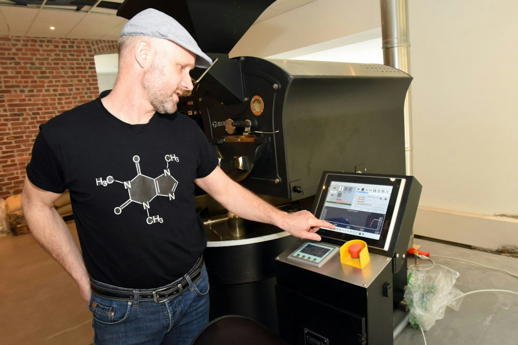Den heißen Ofen nutzt Thomas Pagnia sofort weiter. Nun wandern mexikanische Bohnen in die Trommel. Sie werden zu Espressobohnen – made in Marienheide.
