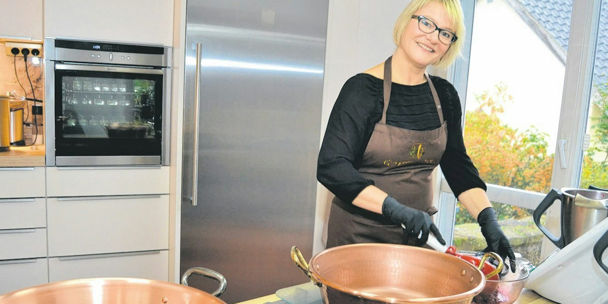Ihre Kücheneinrichtung genügt professionellen Ansprüchen, so dass Sylvia Maria Brielmaier hier gerne ihre fantasievollen Kreationen anrührt.