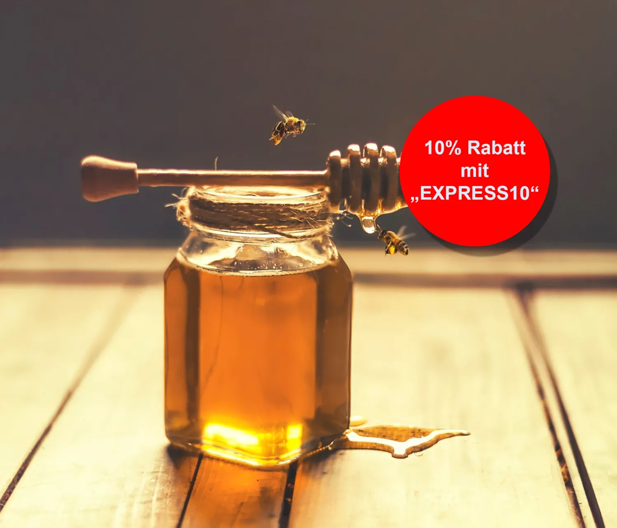 Nutzen Sie unseren exklusiven 10% Rabatt mit dem Gutscheincode „Express10“ und tauchen Sie ein in die natürliche Kraft der Bienen für ein gesteigertes Wohlbefinden.
