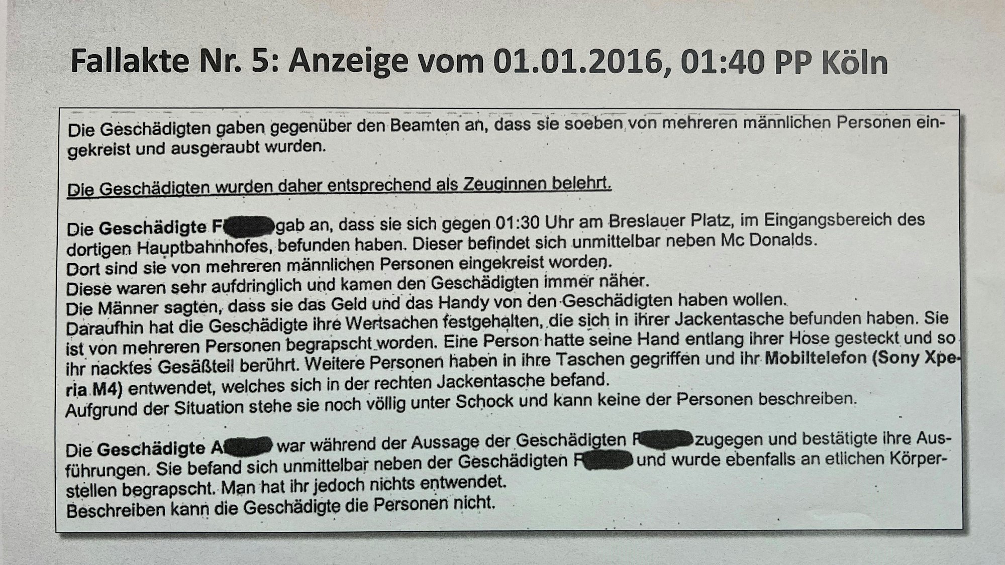 Ich habe erst einmal ein Muster entwickelt, damit ich die Anzeigen systematisch bearbeiten konnte. Schnell zeigte sich eine gewisse Ähnlichkeit: Die Strafanzeigen waren überwiegend kurzgehalten, es wurden nur wenige Details berichtet, aus denen sich aber ein einheitliches Bild abzeichnete. Die überwiegend weiblichen Geschädigten beschrieben, wie sie im Domumfeld von Männergruppen umringt und begrapscht wurden. In den allermeisten Fällen handelte es sich also um sexuelle Übergriffe, teilweise mit Diebstählen verbunden.