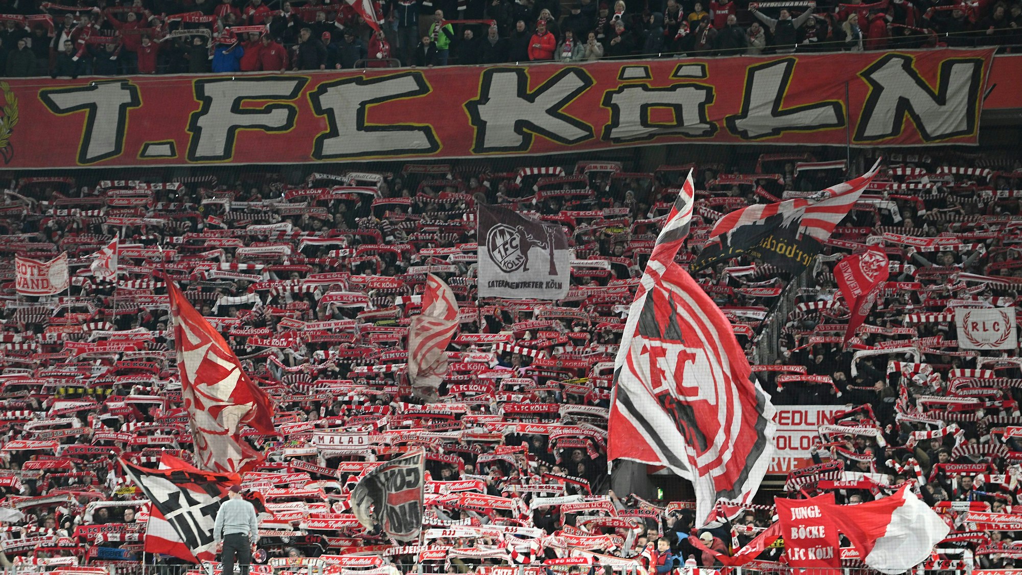 Bedingungslose Unterstützung: Die FC-Fans auf der Südtribüne des Rhein-Energie-Stadions.