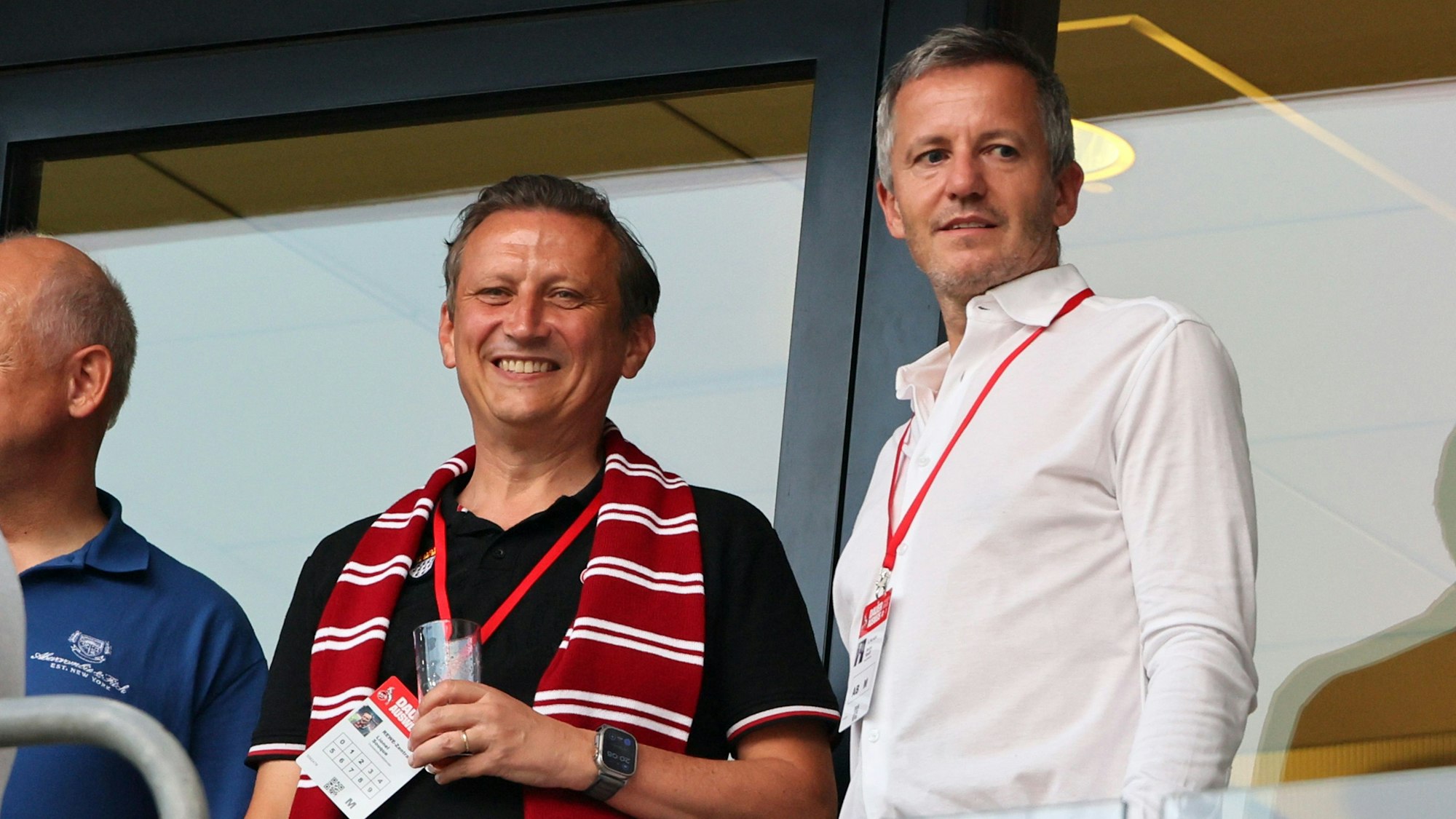 Arbeiten über 2025 hinaus zusammen: Rewe-Chef Lionel Souque (l.) und der kaufmännische FC-Geschäftsführer Philipp Türoff (r.).
