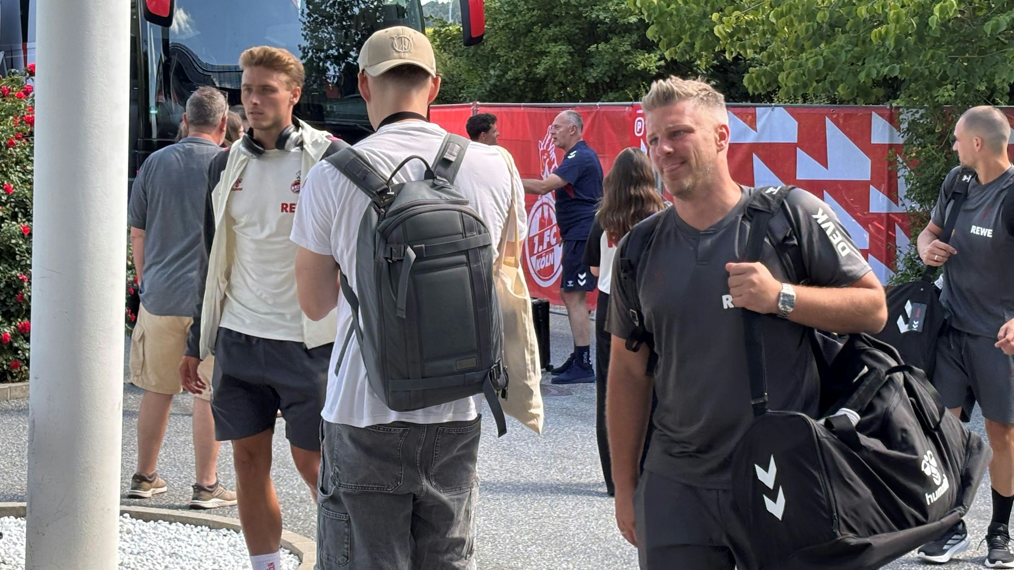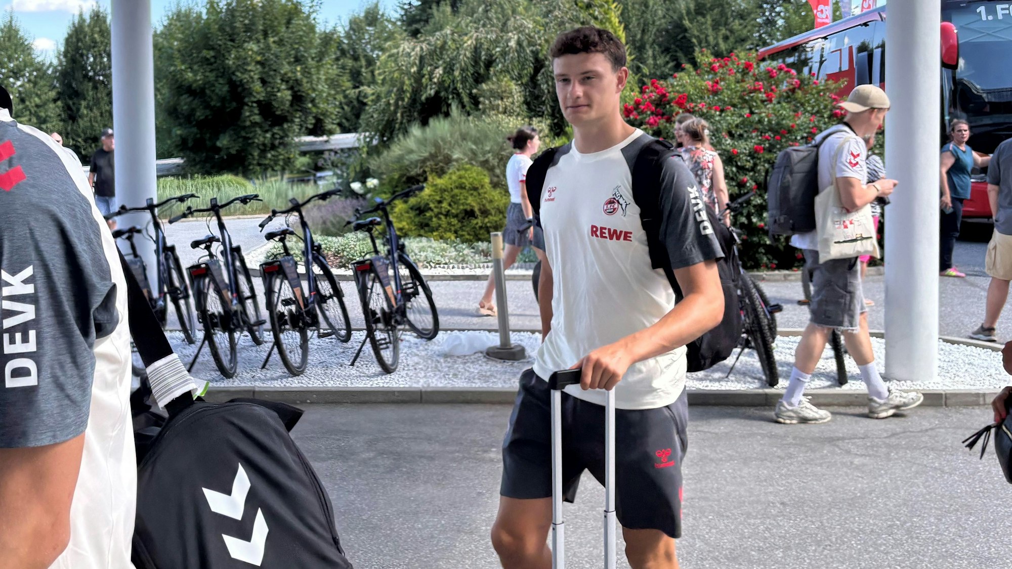 Mit dabei waren sowohl die U21-Nationalspieler Jan Thielmann und Eric Martel als auch Said El Mala, der als letzter FC-Spieler die Ausrüstungskoffer in das Hotel schob. Der 18-Jährige und sein Bruder Malek hatten am Vormittag ihre Verträge beim FC vorzeitig um ein Jahr bis 2030 verlängert.