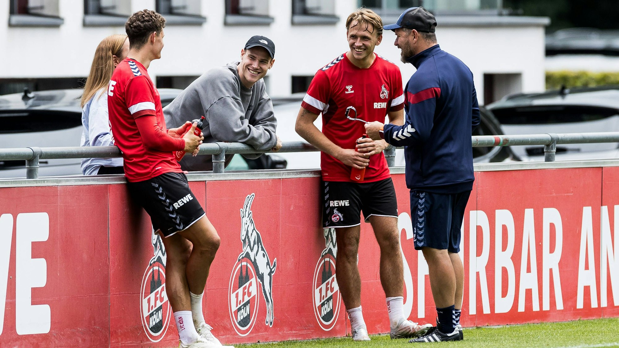 Wiedersehen macht Freude: Mittelstürmer Steffen Tigges (M.) schaute am Dienstagvormittag beim Mannschaftstraining des 1. FC Köln vorbei.