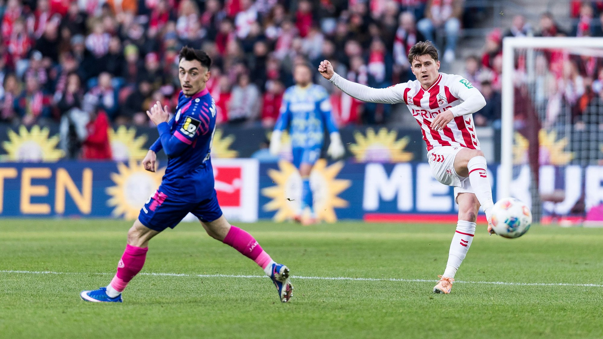 Ragnar Ache geriet geradezu ins Schwärmen. „Seine Flanken sind überragend. Wenn er den Ball hat, versuche ich immer, im Strafraum in eine gute Position zu kommen“, benannte der Mittelstürmer des 1. FC Köln die wohl größte Qualität seines Mitspielers Alessio Castro-Montes. In der 57. Minute des Heimspiels gegen den FSV Mainz 05 (2:1) funktionierte das Zusammenspiel zwischen den beiden Sommer-Neuzugängen des Fußball-Bundesligisten besonders gut. Auf Höhe des Strafraums legte Castro-Montes sich den Ball auf seinen eigentlich schwächeren linken Fuß und schlug eine präzise Flanke an den zweiten Pfosten. Dort schraubte Ache sich in die Höhe und köpfte mithilfe der Unterkante der Latte zum 1:1 ein.