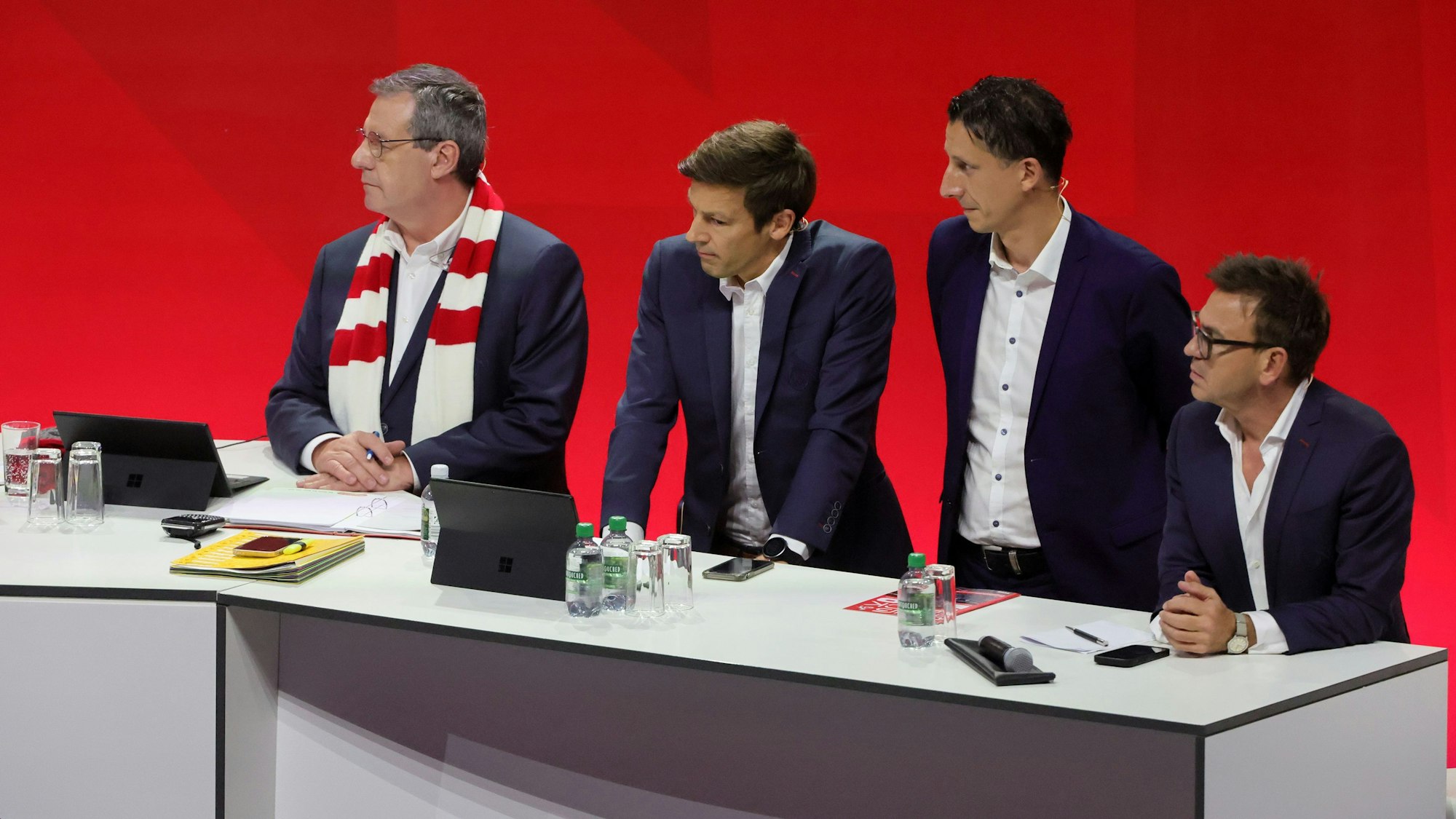 Stehen beim 1. FC Köln in der Kritik (v.l.): Präsident Werner Wolf, Vize Carsten Wettich sowie die Geschäftsführer Christian Keller und Markus Rejek.