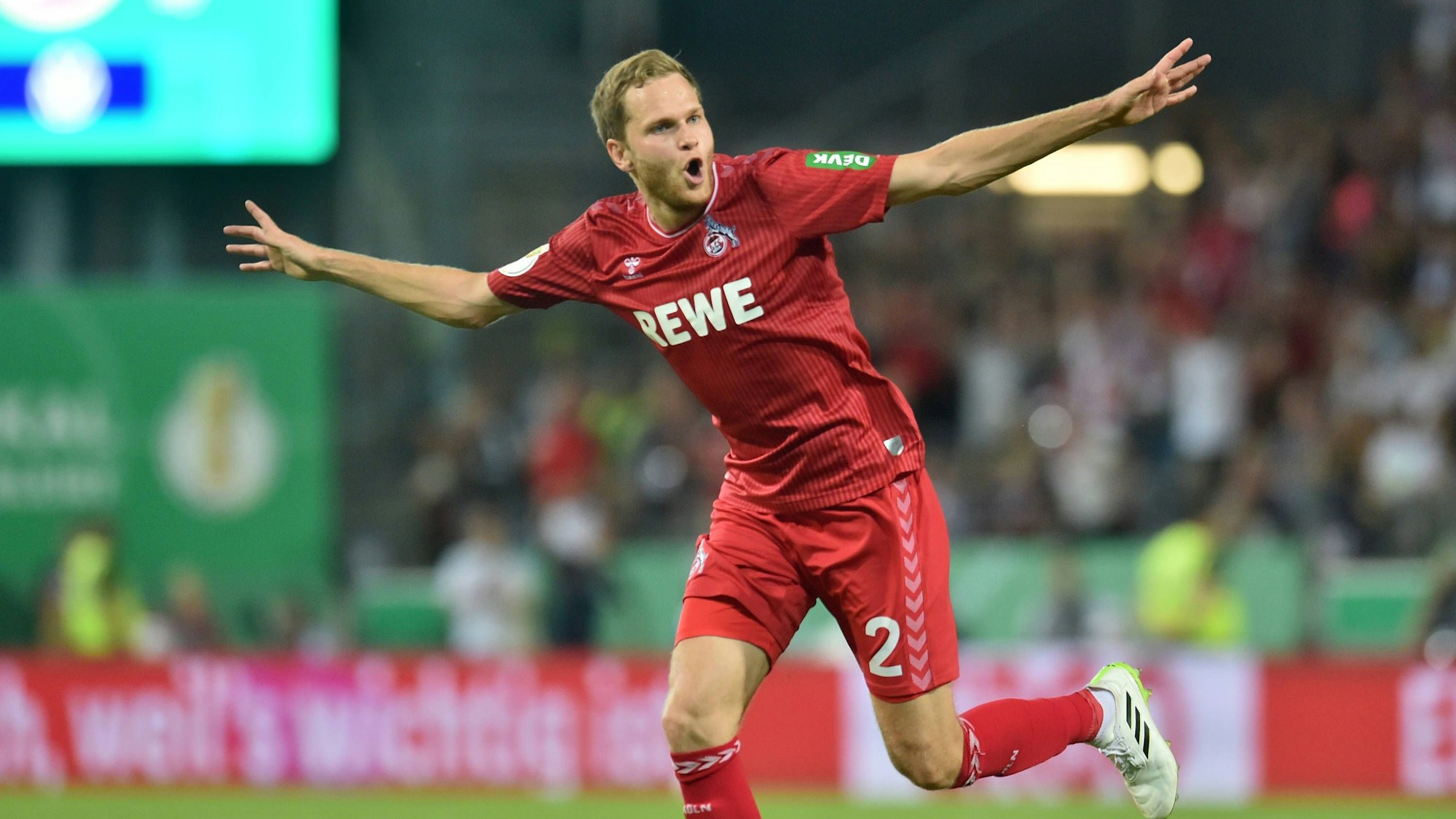 FC-Rechtsverteidiger Benno Schmitz bejubelt sein Traumtor zur 1:0-Führung nach 45 Minuten.