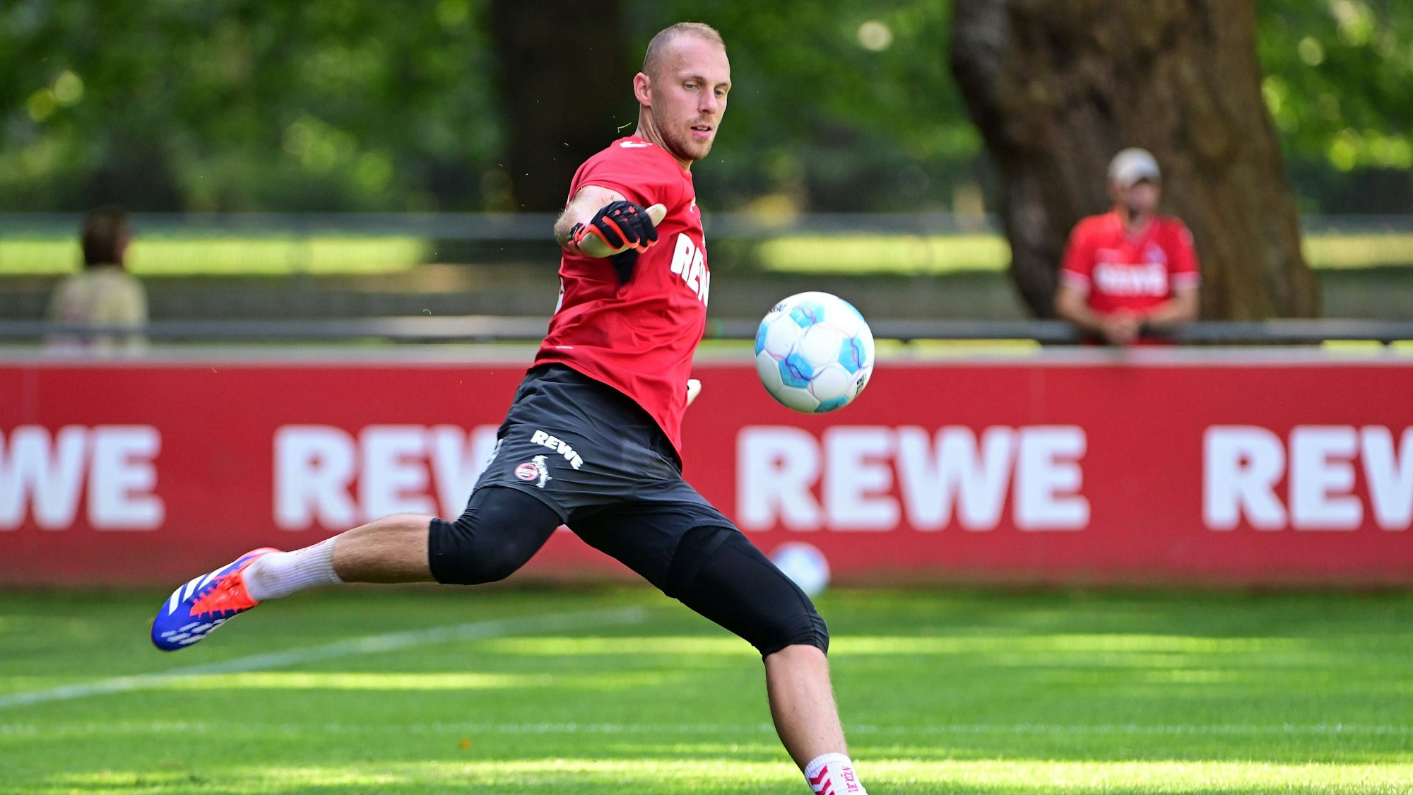 Am Dienstag stand Marvin Schwäbe wieder ganz normal auf dem Trainingsplatz. Von den Rückenbeschwerden, die den zur Nummer zwei abgerutschten Schlussmann daran gehindert haben sollen, den 1. FC Köln zum ersten Auswärtsspiel der Zweitliga-Saison bei der SV Elversberg (2:2) zu begleiten, war nichts mehr zu sehen. Schwäbe absolvierte die komplette, rund zweistündige Einheit ohne erkennbare Einschränkungen. Am vergangenen Freitag hatte der 29-Jährige das Abschlusstraining vor der Abreise ins Saarland dagegen vorzeitig beendet, daraufhin nahm erneut Philipp Pentke (39) als Vertreter des neuen Stammtorhüters Jonas Urbig (21) auf der Kölner Bank Platz.