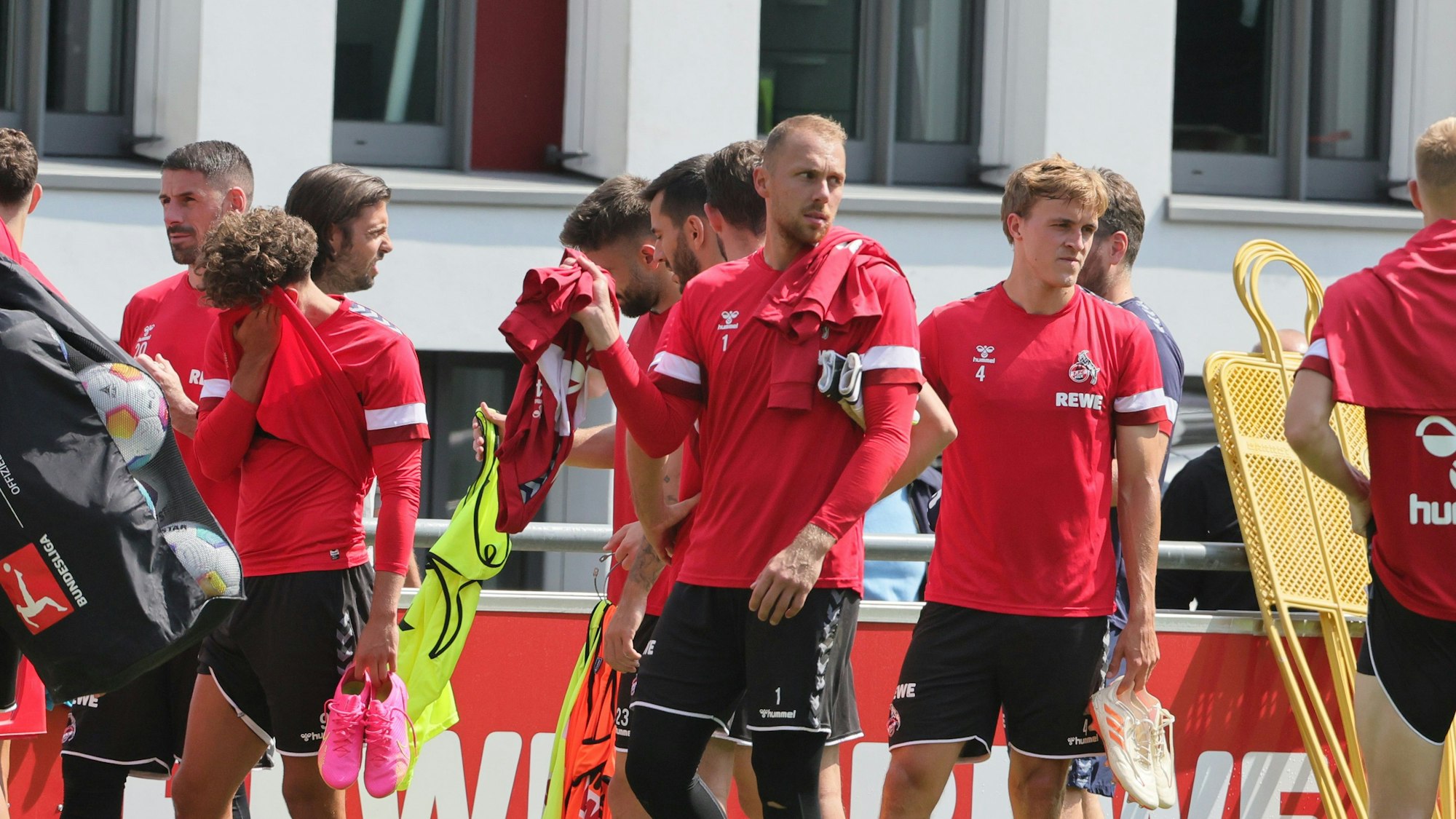 Marvin Schwäbe (M.) geht als klare Nummer eins des 1. FC Köln in die Saison.