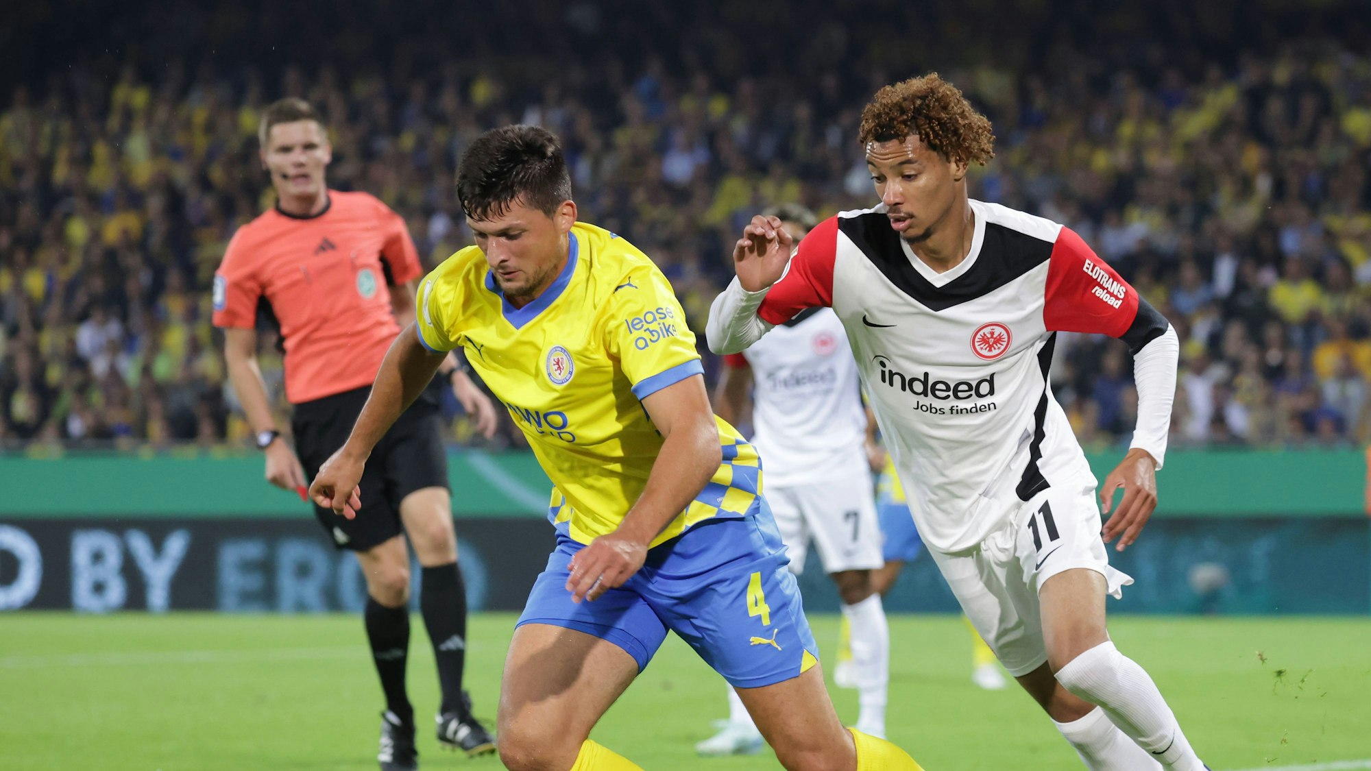 Braunschweigs Innenverteidiger Jannis Nikolaou (l.) im Pokalspiel gegen Eintracht Frankfurt.