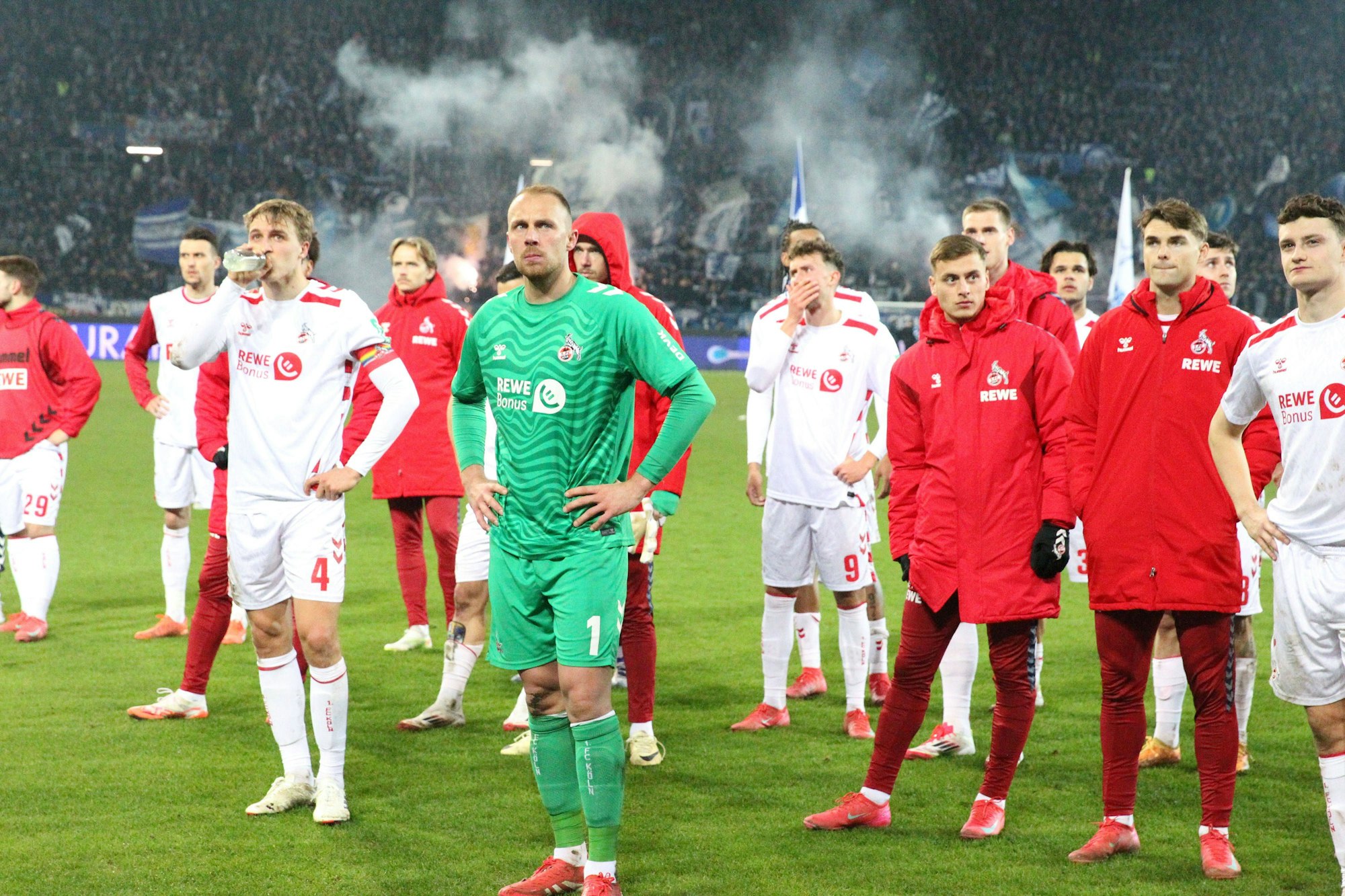 Bedient: Die Mannschaft des 1. FC Köln nach der Pleite in Karlsruhe.