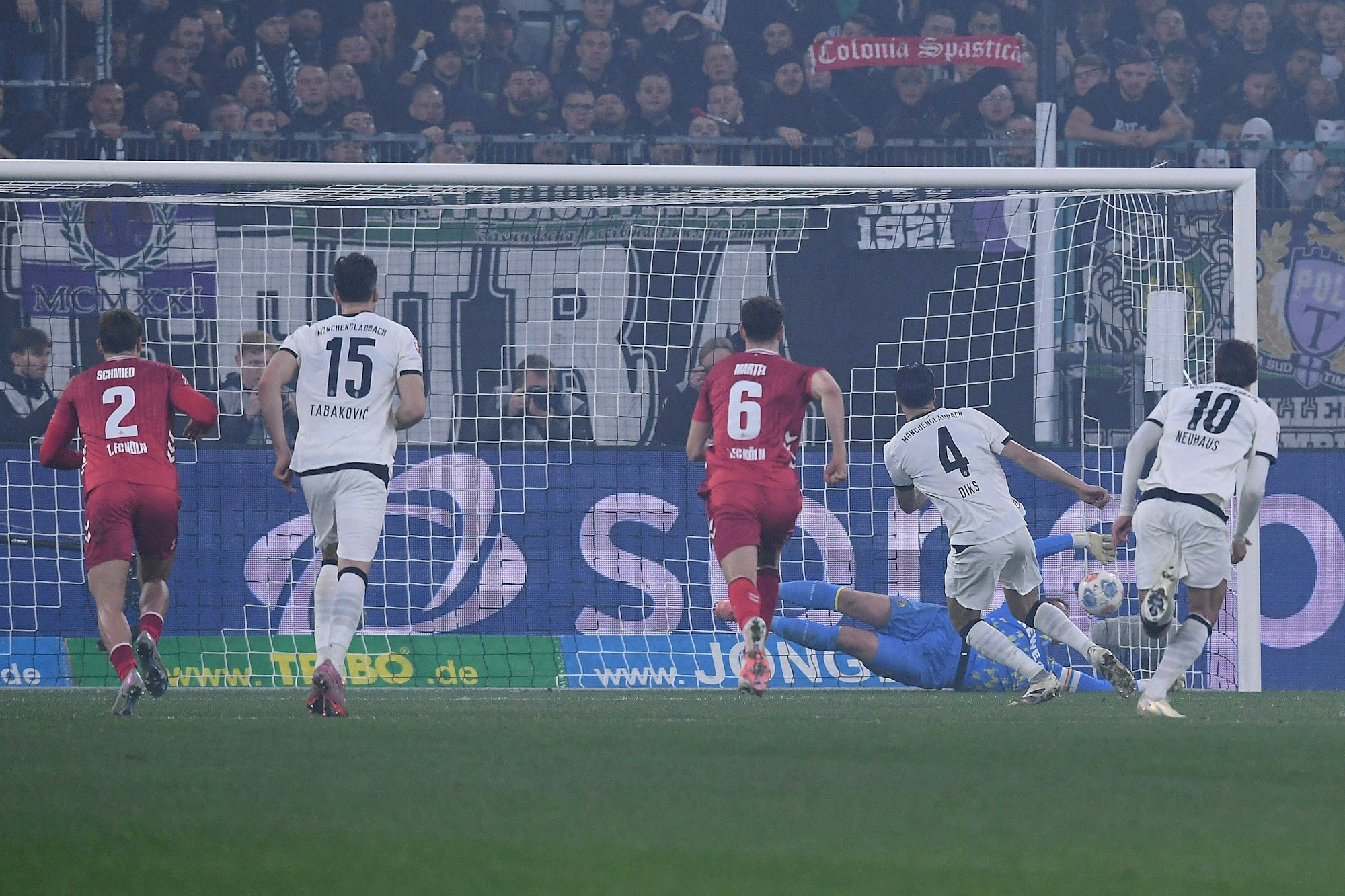 Doch dann wurde dem FC zum zweiten Mal der Videobeweis zum Verhängnis. Nach einem weiten Gladbacher Einwurf sprang Lund der Ball unglücklich an die Hand. Das Spiel lief wie schon vor dem ersten Elfmeter erst einmal weiter, ehe Aytekin auf Intervention des „Kölner Keller“ erneut auf den Punkt zeigte. Kevin Diks erhöhte auf 2:0 – auch wenn Schwäbe abermals das richtige Eck geahnt hatte (62.). Zwei Minuten später war das Derby endgültig entschieden. Cenk Özkacar verursachte mit einem Ballverlust gegen Honorat einen Konter, an dessen Ende Tabakovic nur noch ins leere Tor einschieben brauchte.