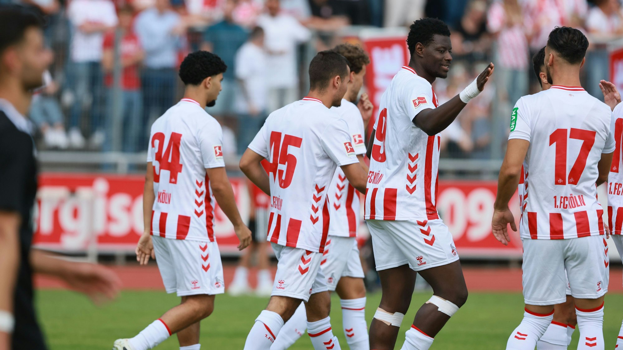 Danach war der Fünftligist kurz davor, sogar auf 2:3 zu verkürzen. Ein Fernschuss von Stefano Fragapane segelte am Lattenkreuz vorbei (28.), Sami Akremi scheiterte bei einem Konter frei stehend an Schwäbe (33.), auch Ardit Mimini brachte die Kölner Defensive in Bedrängnis (37.). Als Schwachstelle erwies sich die rechte Seite, wo Neo Telle und Christensen keinen Zugriff bekamen.