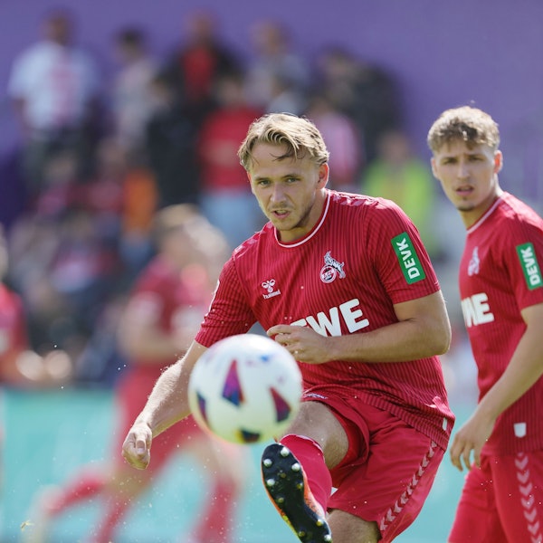 Der FC ließ sich dabei auch vom zu hohen Rasen im Erftstadion nicht beirren und stellte die Weichen früh auf Sieg. Das Führungstor in der sechsten Minute resultierte aus einem sehenswerten Spielzug über die rechte Seite. Benno Schmitz bediente mit einem Steilpass Dejan Ljubicic, dessen Hereingabe vor die Füße von Luca Waldschmidt abgewehrt wurde. Der Neuzugang schloss überlegt ins lange Eck ab.