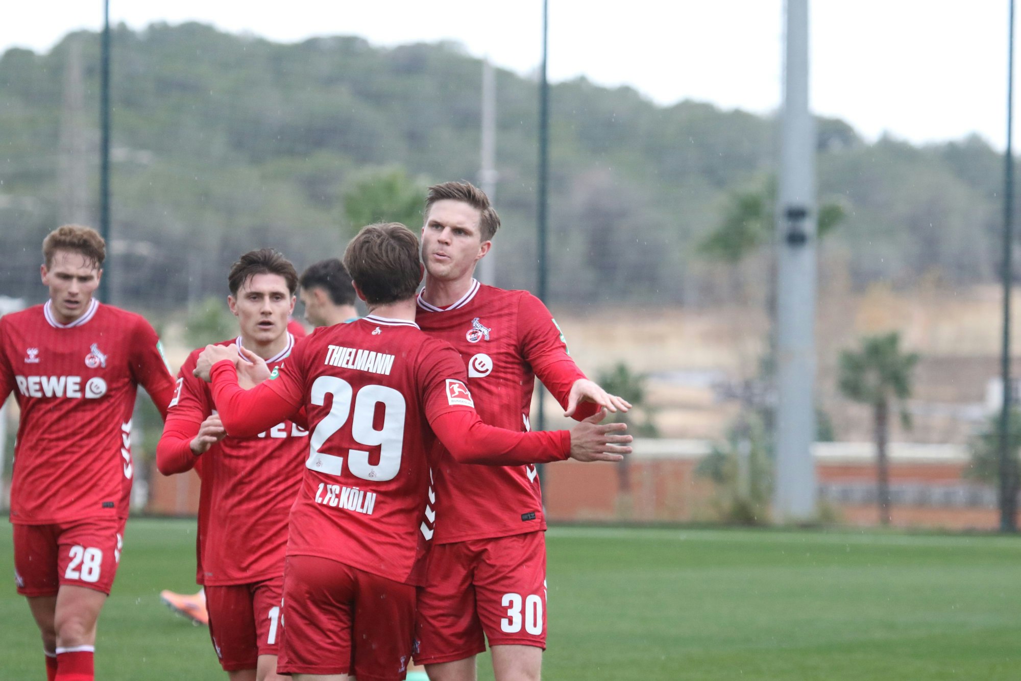Die Kölner waren nach rund einer halben Stunde durch Marius Bülter in Führung gegangen. Der zuletzt formschwache Angreifer verwertete eine Hereingabe von Jan Thielmann (28.). Bülter, der in der Bundesliga letztmals am 22. November gegen Eintracht Frankfurt (3:4) getroffen hatte, dürfte das Erfolgserlebnis guttun. „Bülti hat in den letzten zwei Tagen aufsteigende Tendenz gezeigt. Es tut einem jungen Familienvater auch mal ganz gut, ins Trainingslager zu fahren. Dann schläfst du mal wieder durch und fokussierst dich auf den Fußball. Wir sind guter Dinge, dass er da jetzt nachlegen kann und wird“, erklärte Kwasniok. Kämpferisch tat sich vor allem Jan Thielmann hervor. Der rechte Schienenspieler wandelte in der ersten Halbzeit sogar am Rande einer Gelb-Roten Karte.