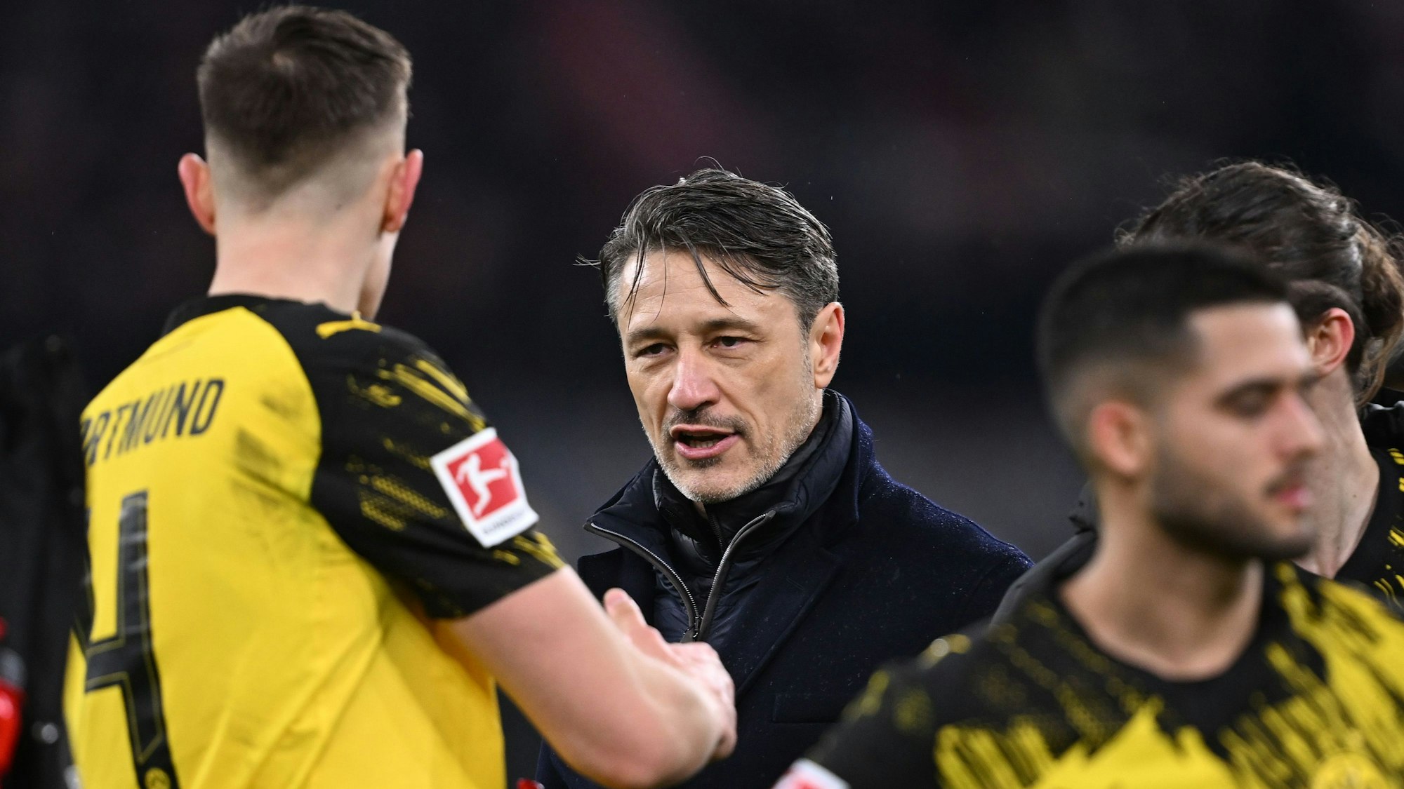 BVB-Trainer Niko Kovac muntert seine Mannschaft nach der wohl entscheidenden Niederlage im Gipfeltreffen gegen den FC Bayern auf.