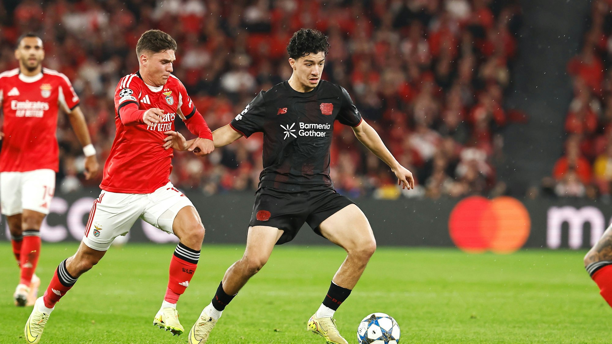 Behielt auch gegen viele Gegner den Überblick: Leverkusens Ibrahim Maza (in Schwarz) zeigte in Lissabon ein starkes Spiel.