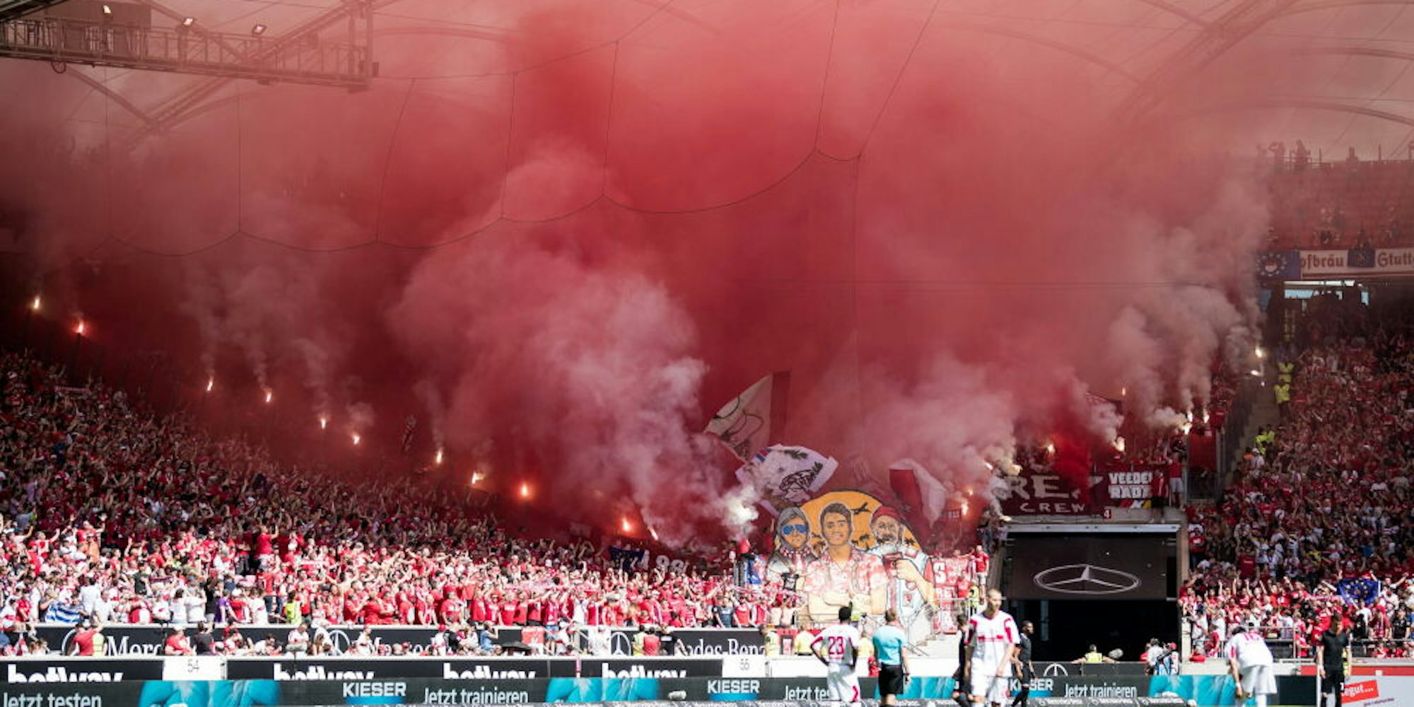 Pyrotechnik der FC-Fans beim Spiel in Stuttgart.