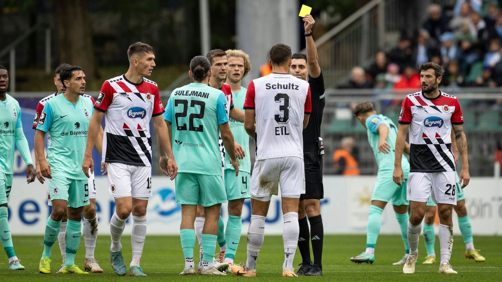 Dieses Drittligaspiel werden die Beteiligten so schnell nicht vergessen: Beim 2:1-Heimsieg des FC Viktoria Köln gegen den TSV 1860 München hagelt es vier Platzverweise sowie zehn Gelbe Karten.