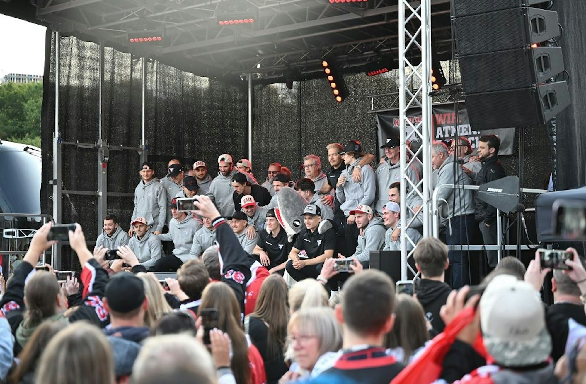 Beliebtes Fotomotiv: die Mannschaftsvorstellung der Kölner Haie.