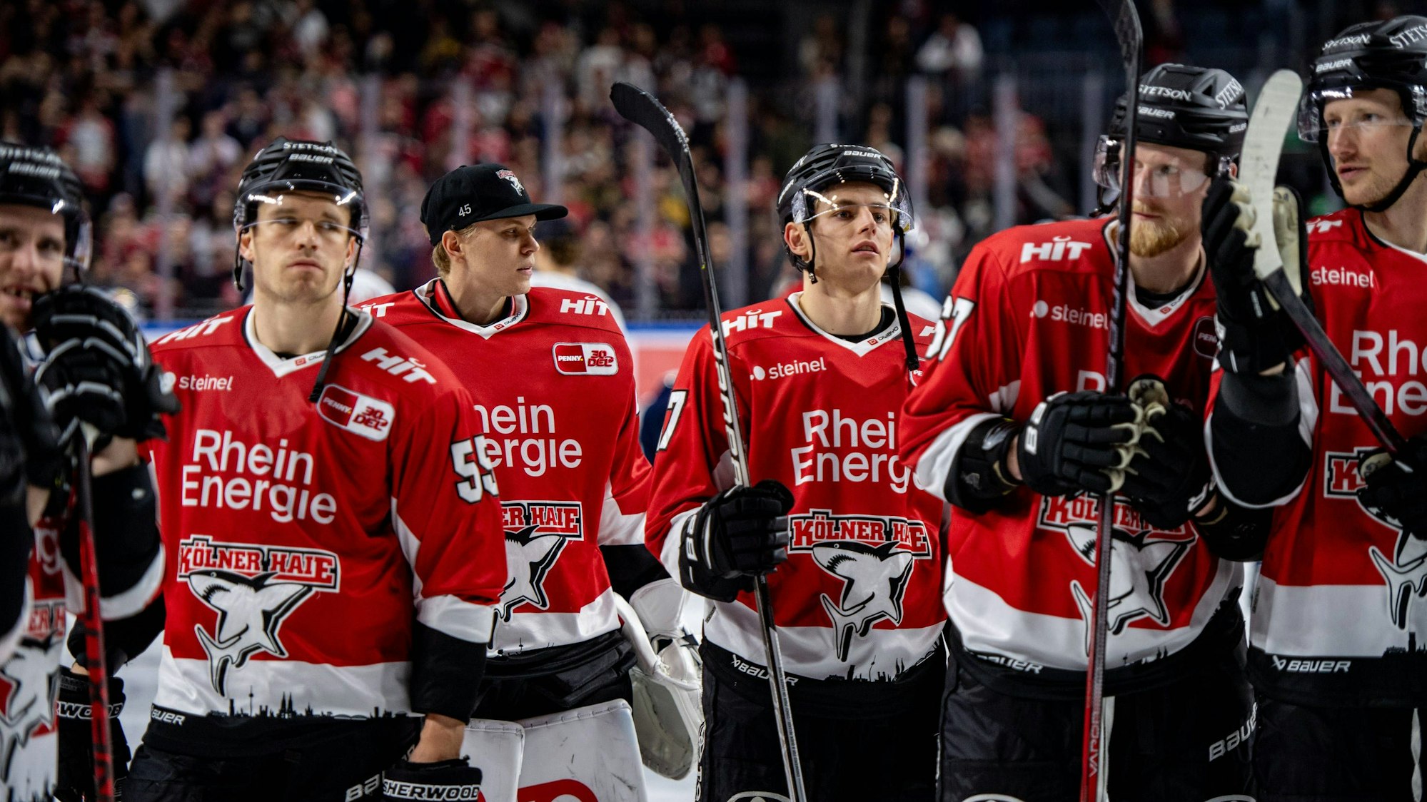 Weit und breit nur enttäuschte Gesichter: Die Mannschaft der Kölner Haie nach der 1:5-Packung gegen München.