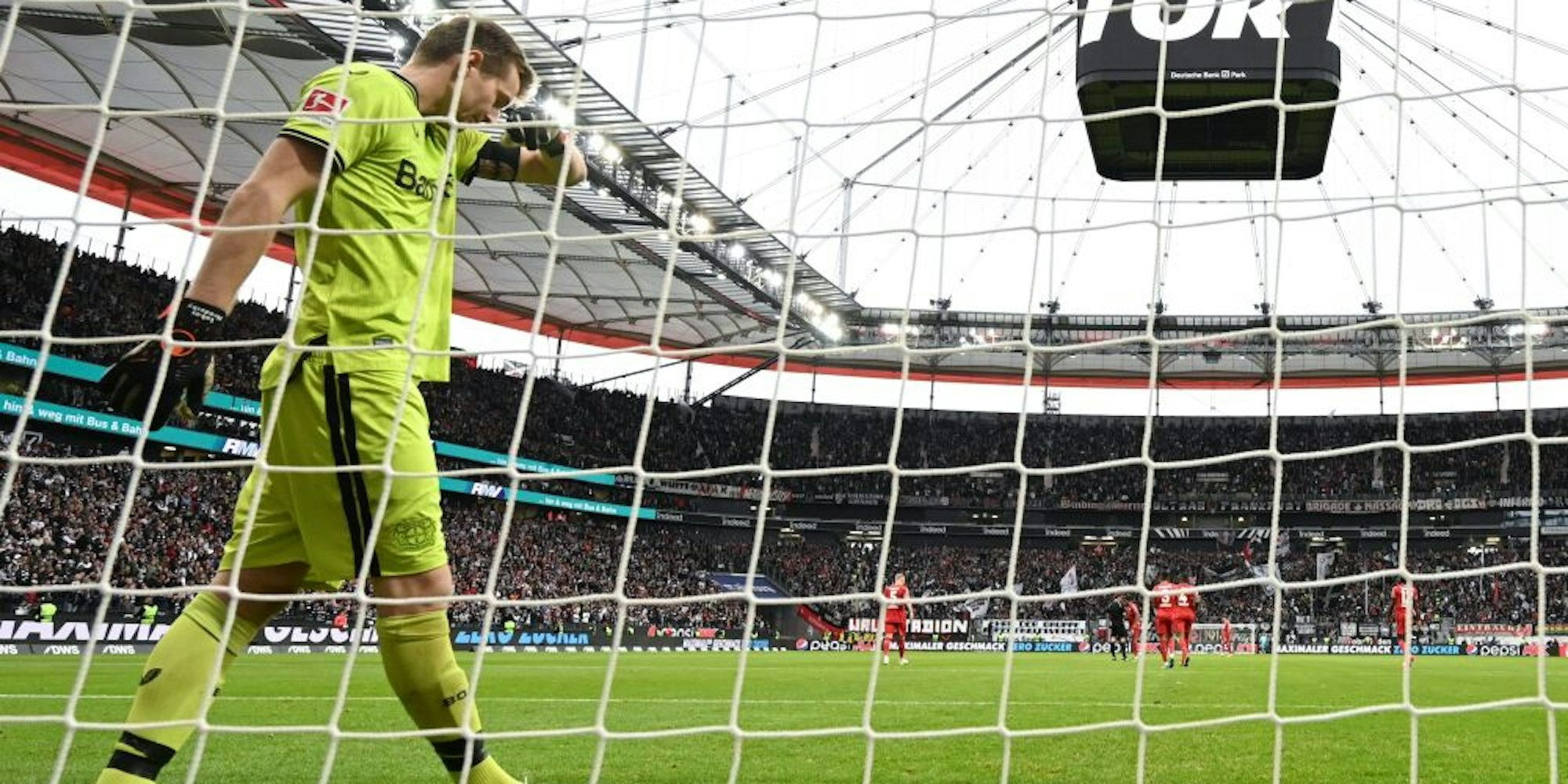Bayers Torhüter Lukas Hradecky musste beim Spiel gegen Frankfurt fünf Mal hinter sich greifen.