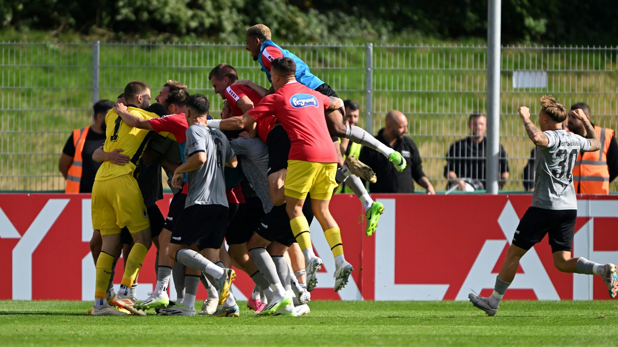 Jubeltaumel in Höhenberg: Viktoria Köln steht erstmals seit 2015 wieder in der zweiten Runde des DFB-Pokals.